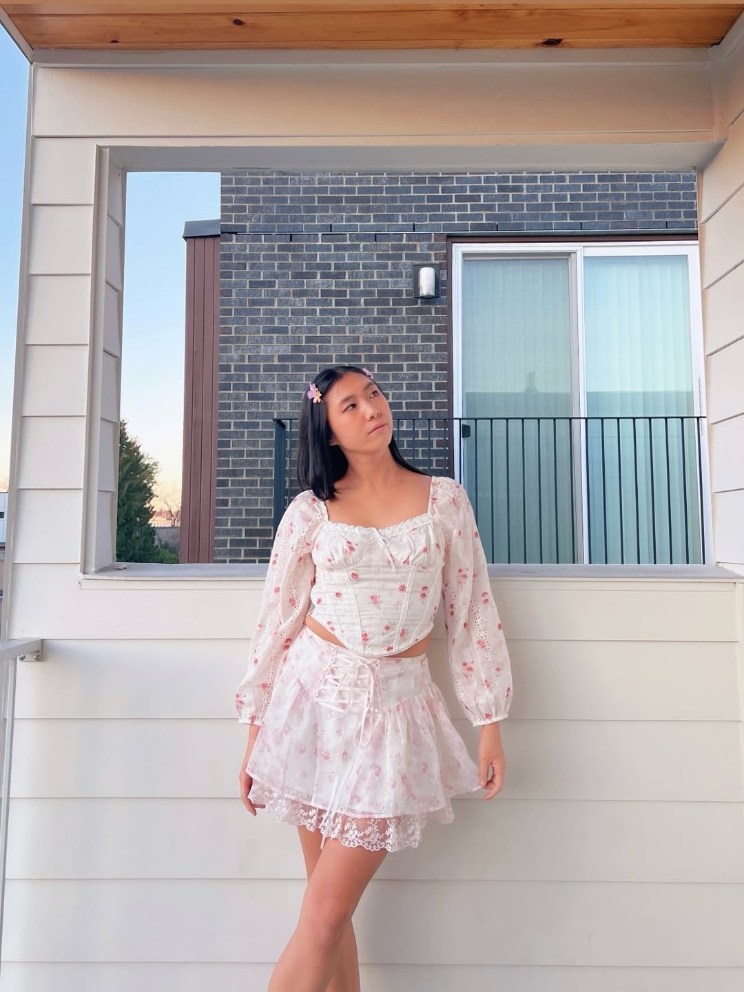 It’s soft girl at its most romantic. The kind of outfit that makes you want to slow down, pick flowers, and pretend your life has a pastel filter on it. Sweet, feminine, and effortlessly poetic.