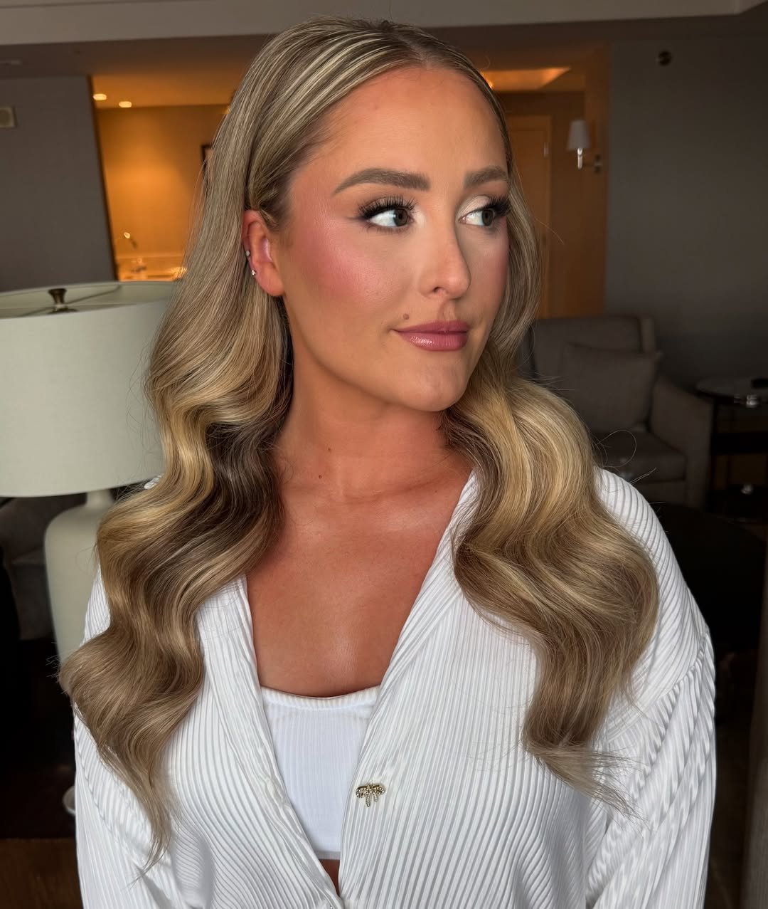 This is such a wearable look too. Bridal, engagement, or even a very elevated everyday moment. Soft waves like this don’t try to steal the spotlight—they just glow quietly.