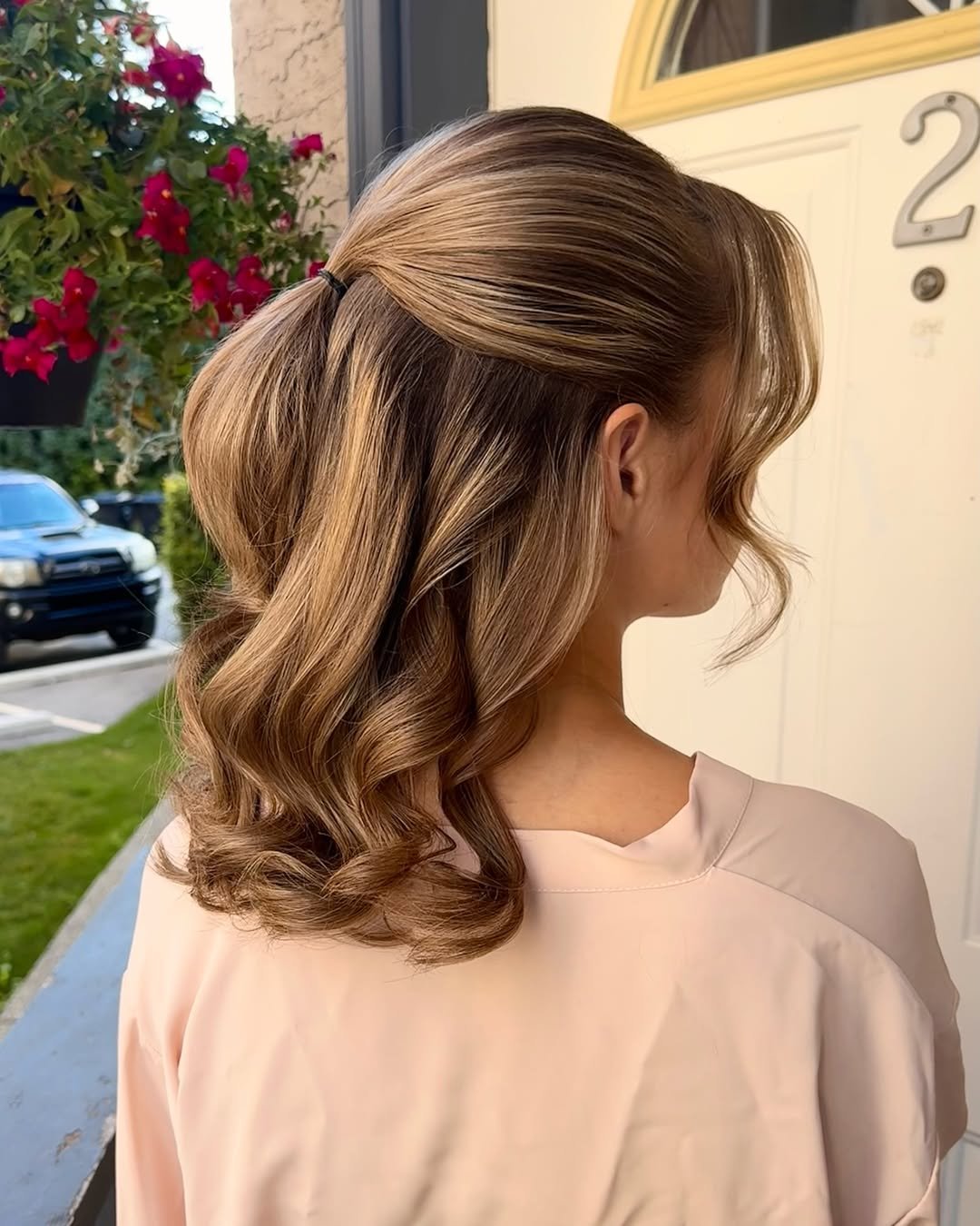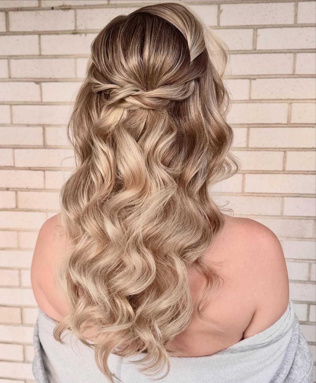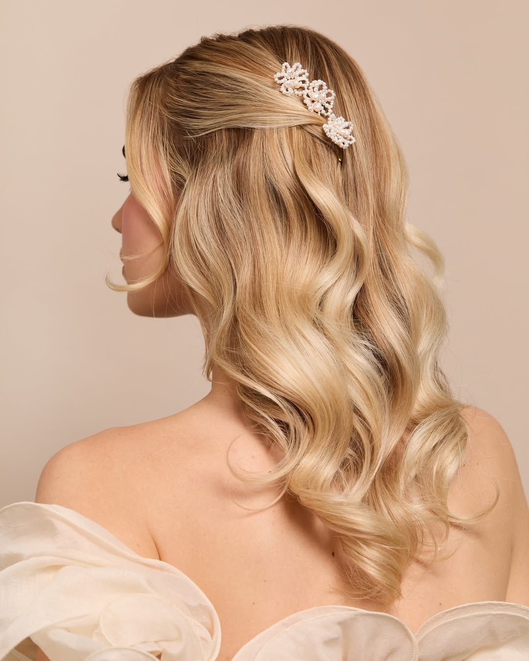 This half-up style strikes the perfect balance between structure and softness. The gentle lift at the crown adds elegance, while the waves keep everything relaxed and natural.