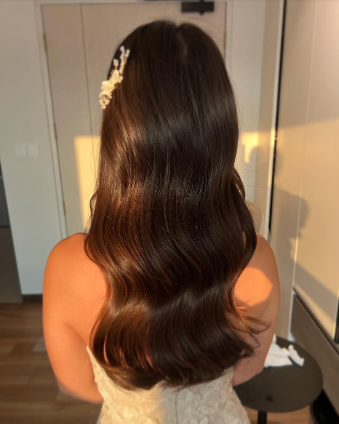 These waves are soft in the most intentional way. Smooth at the crown, gently cascading through the lengths, and finished with that bridal-level polish that feels timeless.
