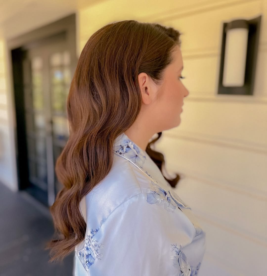 This style is a perfect mix of structure and softness. The half-up detail adds shape and keeps things neat, while the loose waves bring all the romance. It feels traditional in the best way, but still fresh.