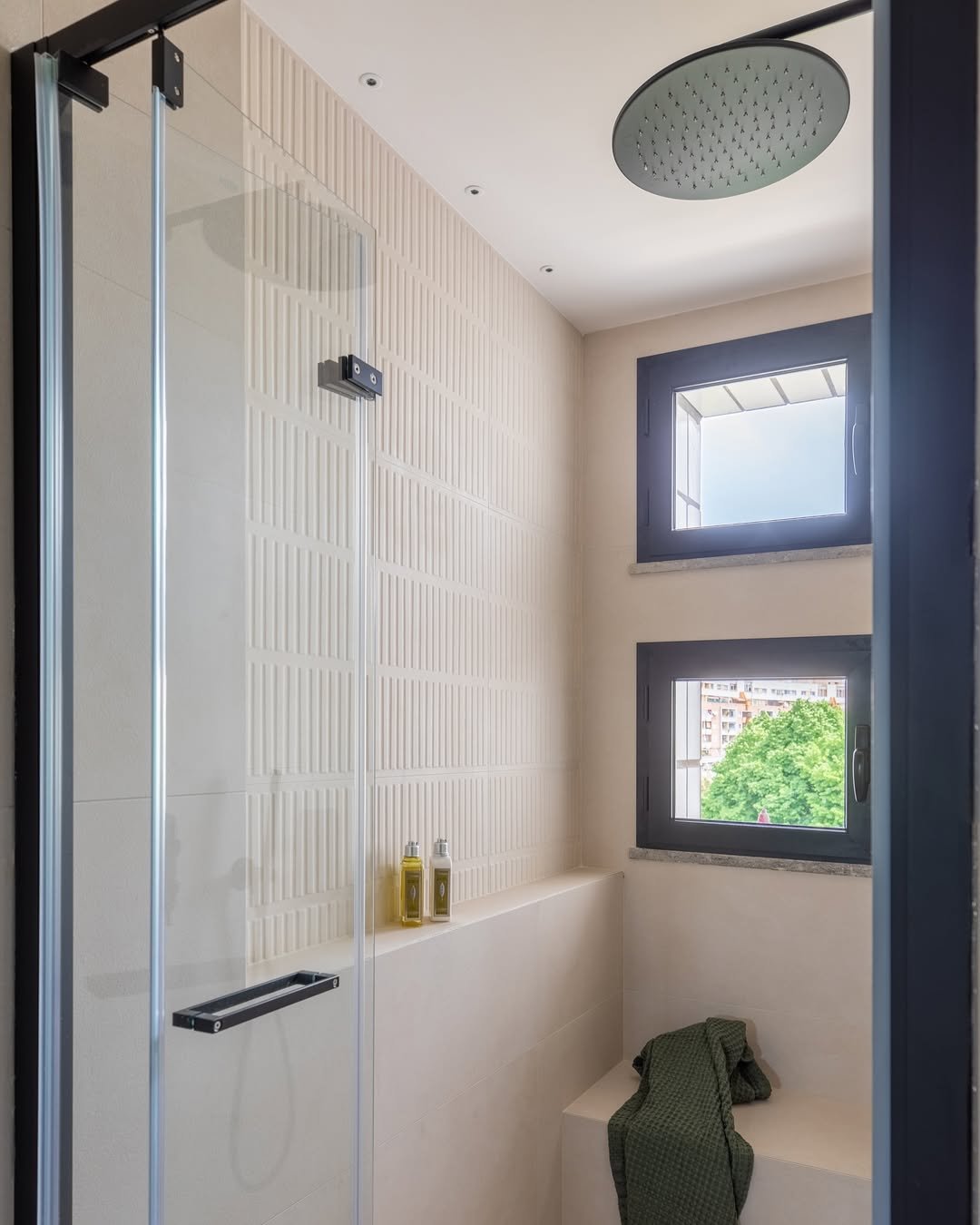 It’s simple in the best way. The built-in ledge, the rainfall shower, the natural light… it all whispers “slow down” instead of trying too hard.
