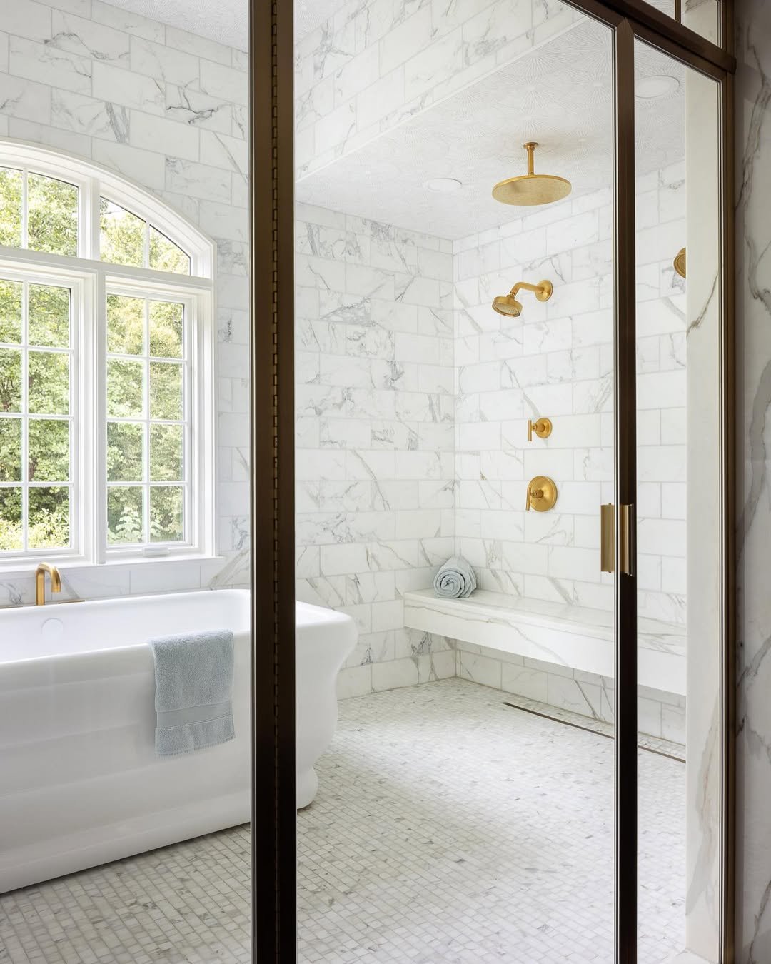 Bright, open, and effortlessly luxurious. The marble, the natural light, the gold fixtures—it all comes together so cleanly.