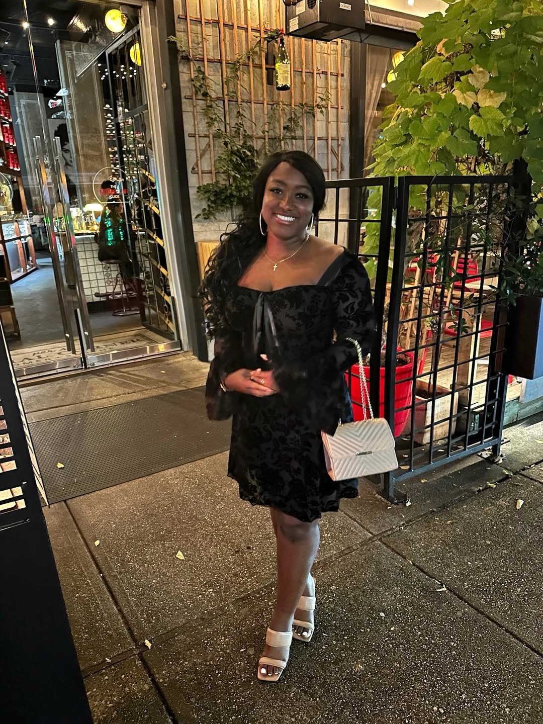 It’s understated in the best way. Add black strappy heels and a sleek clutch, and you’ve got a look that works for rooftop dinners or hidden garden restaurants. Clean, refined, and quietly alluring.