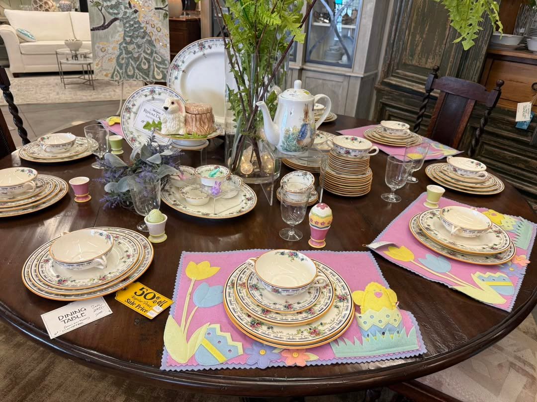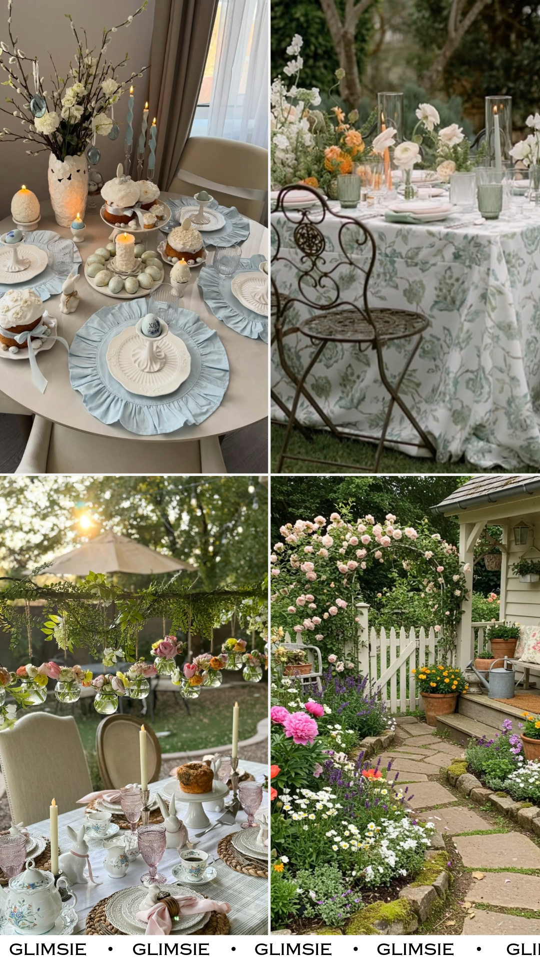 There’s something delightfully nostalgic about this table. The mix of patterned china, pastel placemats, and tiny seasonal accents feels like stepping into a spring gathering that’s been lovingly repeated year after year.