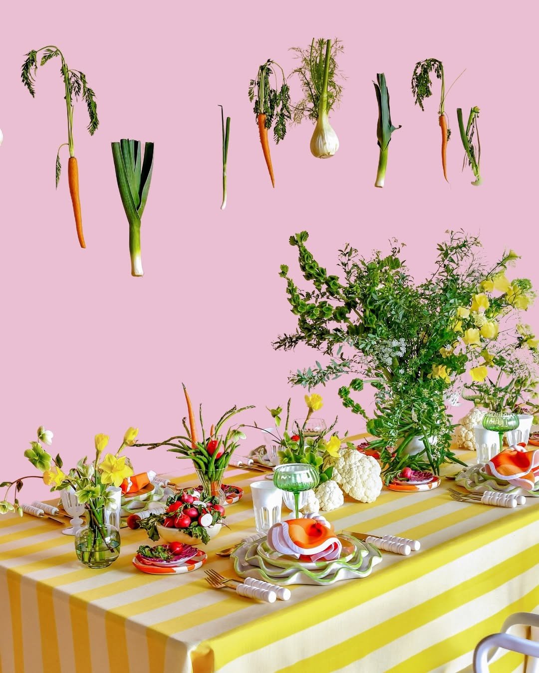 It feels unexpected but grounded. A reminder that spring tables don’t always need flowers to feel alive, sometimes the kitchen itself provides all the beauty.