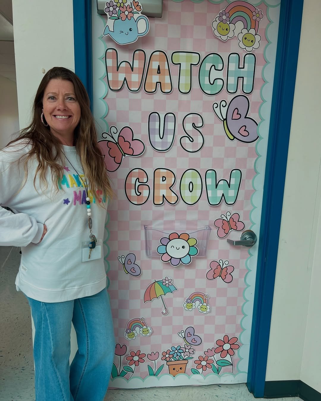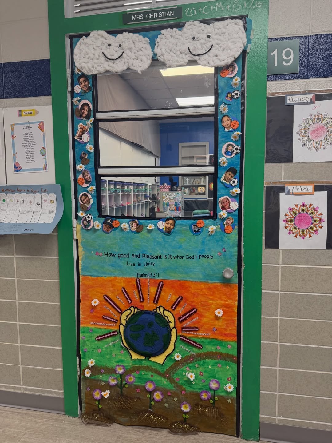 This one feels full of heart. Photos, bright colors, and thoughtful details come together to create a door that tells a story about community and connection.