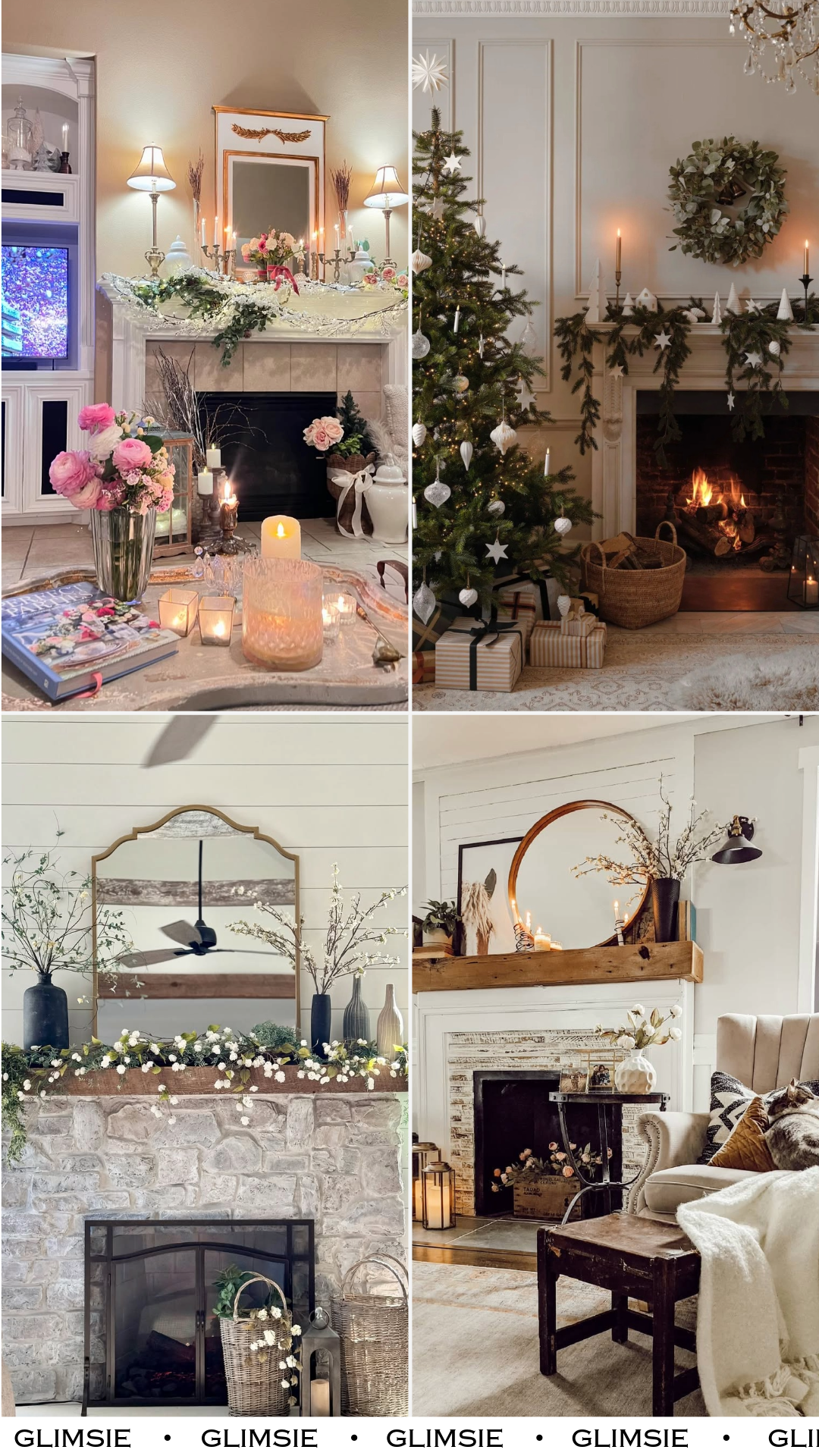 This look proves you don’t need much to make an impact. A simple floral garland stretches across the mantel, paired with a clean vase below for a balanced, uncluttered feel.