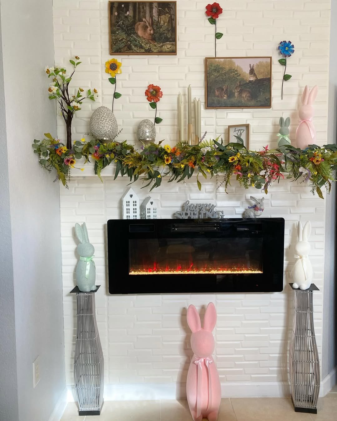 It feels like the kind of mantel that celebrates spring out loud. Mixing bold pieces with softer greenery keeps it from feeling too busy, while still letting personality take the lead.