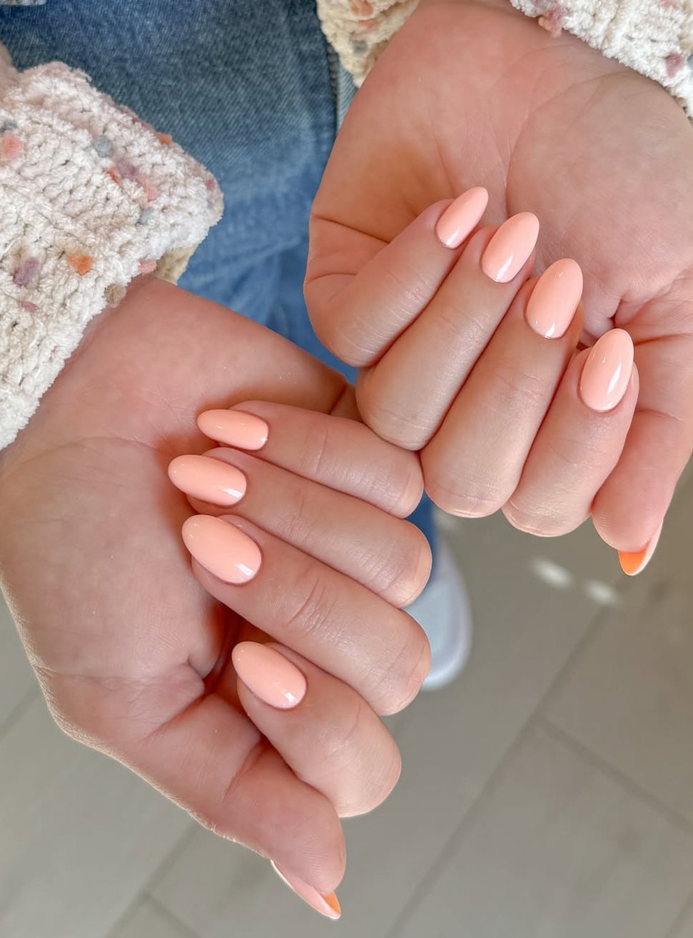 These peachy pastel nails feel warm, fresh, and very spring-ready. The creamy color adds a soft glow to the manicure, making the nails look healthy, glossy, and perfectly polished.