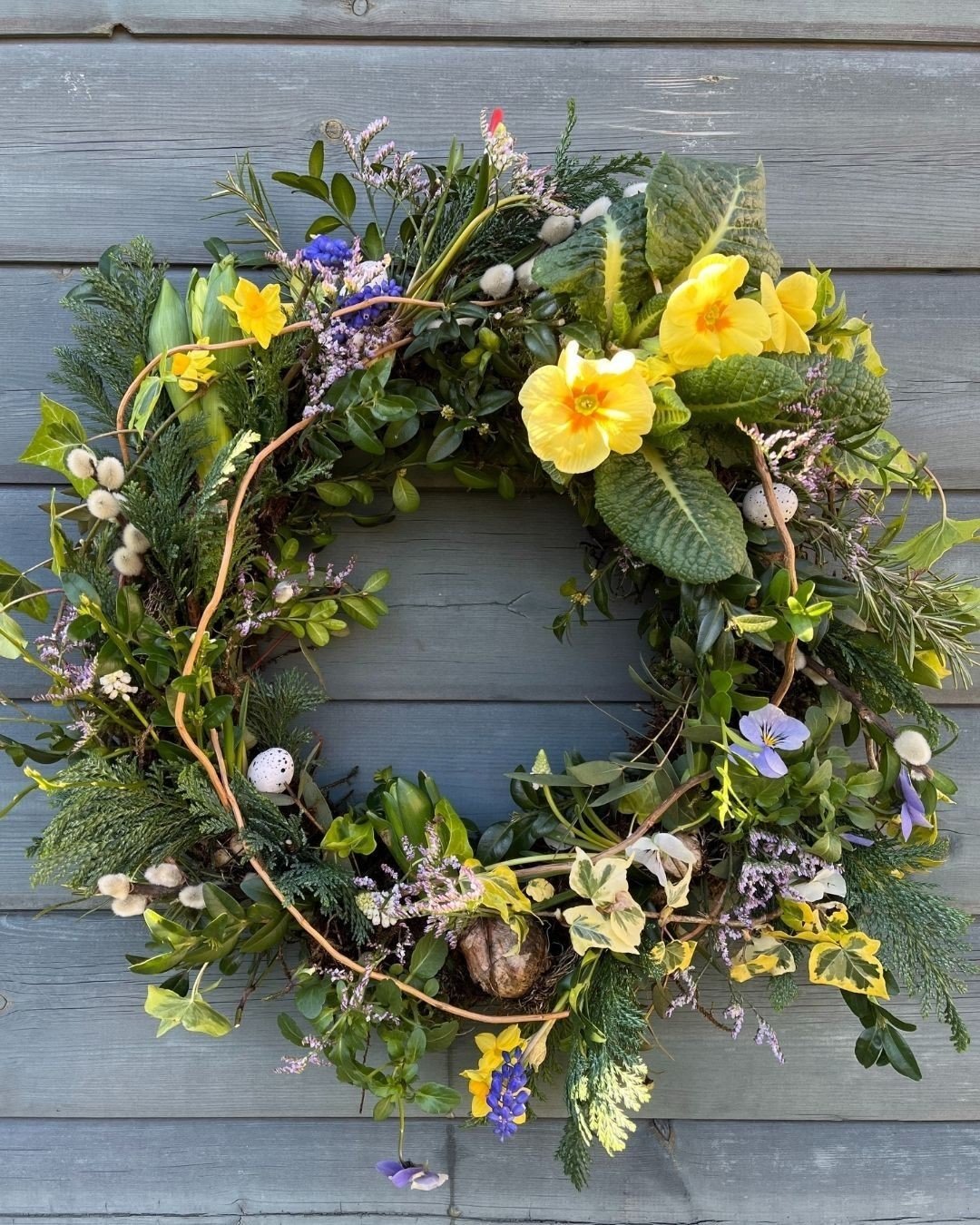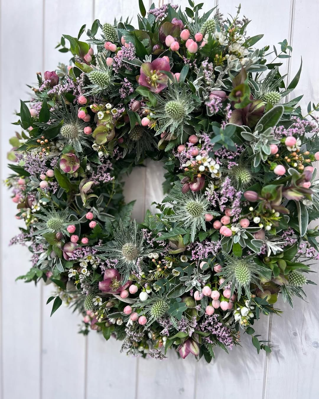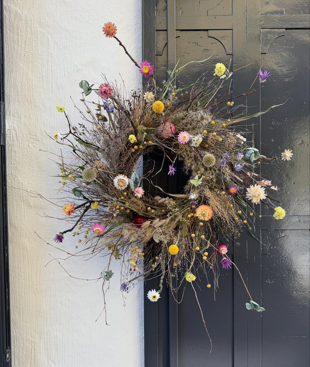 It feels slightly undone in the best way. Think countryside walks and baskets of clipped stems, styled just enough to hang beautifully on your door.