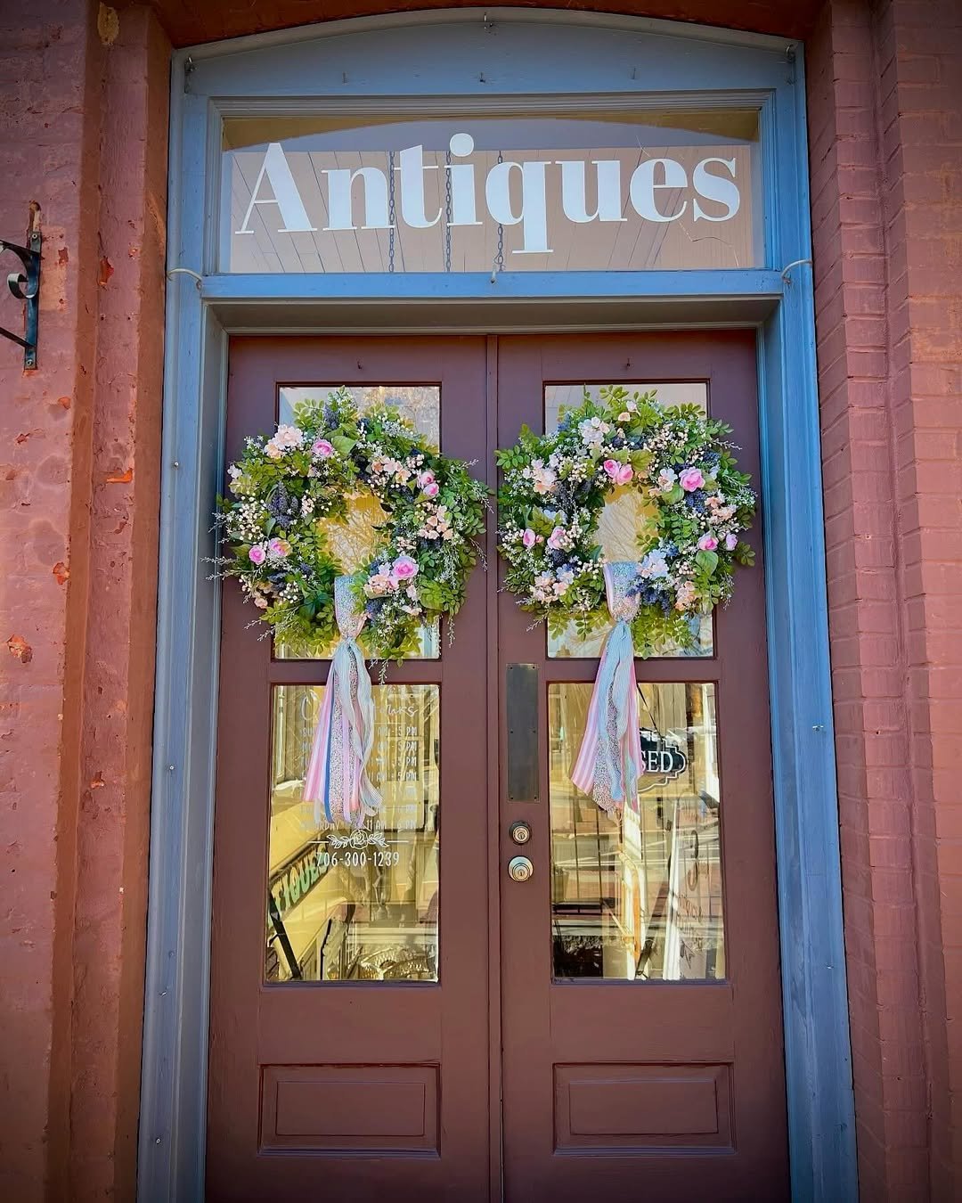 There’s something about twin wreaths that instantly feels elevated, like dressing your front door for a special occasion. These are layered with soft pink blooms, airy greenery, and trailing ribbons that catch the light just enough to feel playful.