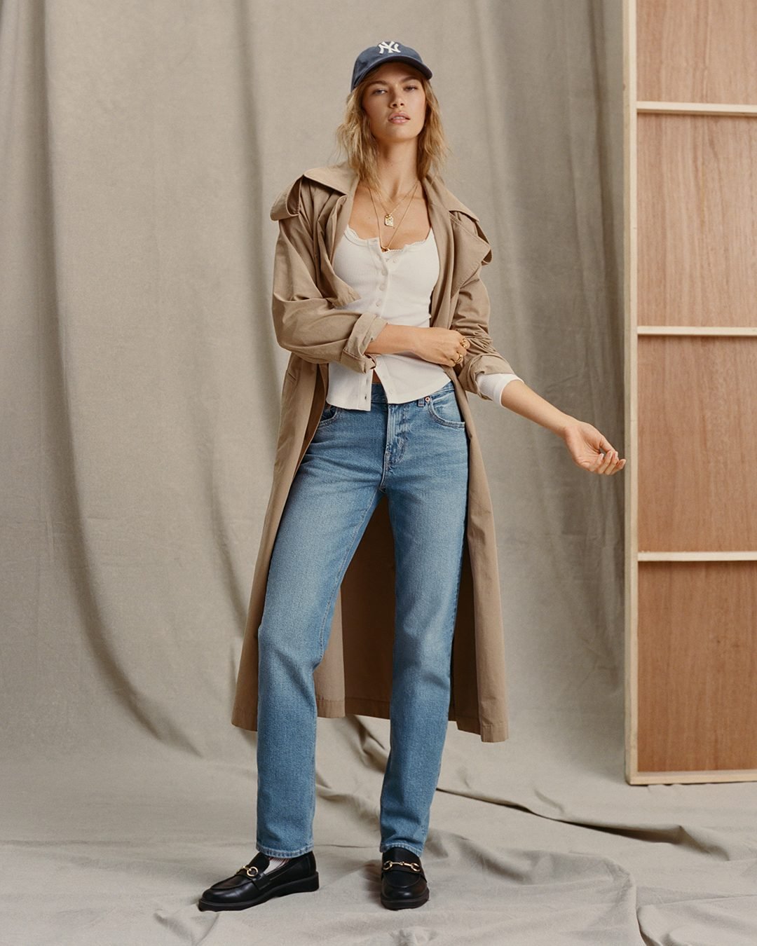 Some outfits just feel timeless, and this one leans right into that effortless cool-girl formula. A relaxed trench layered over a simple white tank creates that clean, city-ready look that never really goes out of style. Add straight leg jeans and suddenly the whole outfit feels instantly pulled together.