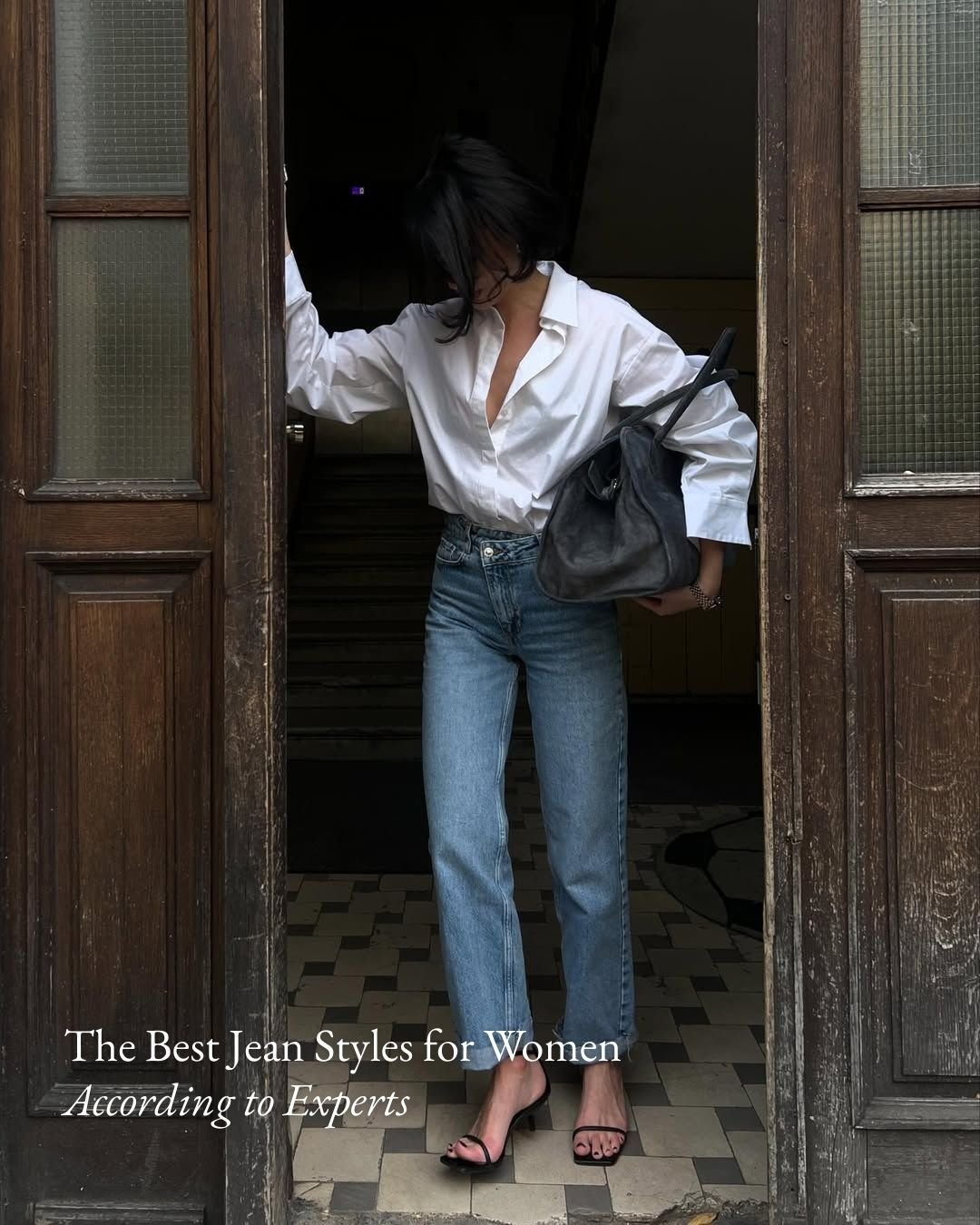 A white button-down and denim might be one of fashion’s most reliable combinations, but this look gives it a fresh, editorial twist. The slightly oversized shirt drapes perfectly over the waist, creating that relaxed yet refined silhouette.