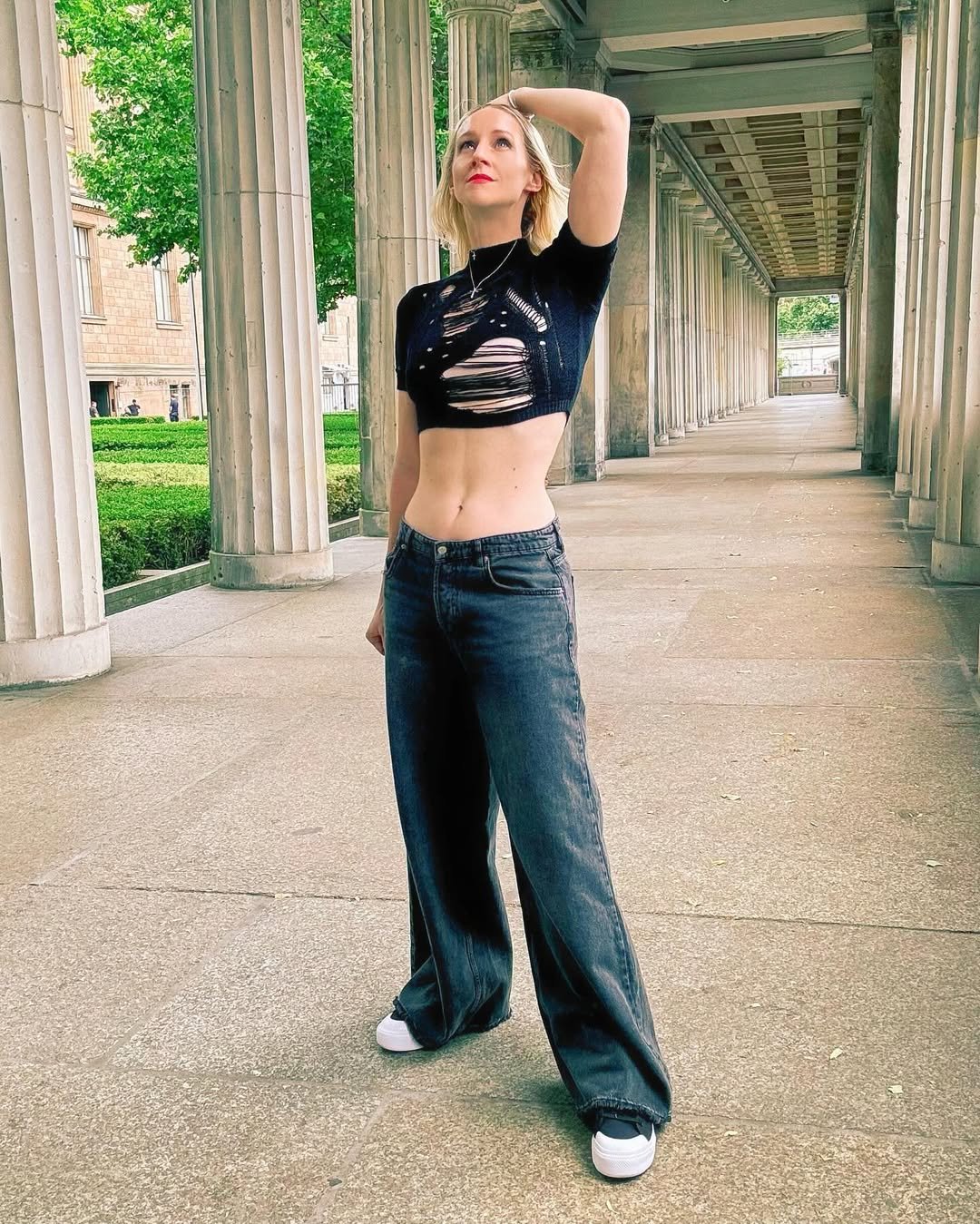 It’s the kind of outfit that doesn’t try too hard but still stands out. The messy bun and minimal accessories keep it effortless—like you just grabbed a few pieces and the whole look somehow clicked.