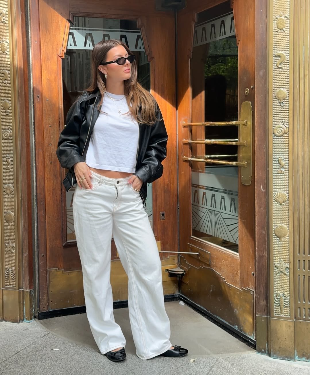 Sometimes the best street style outfits are the simplest ones. A white tee, relaxed jeans, and a cropped leather jacket—three pieces that always seem to work together.