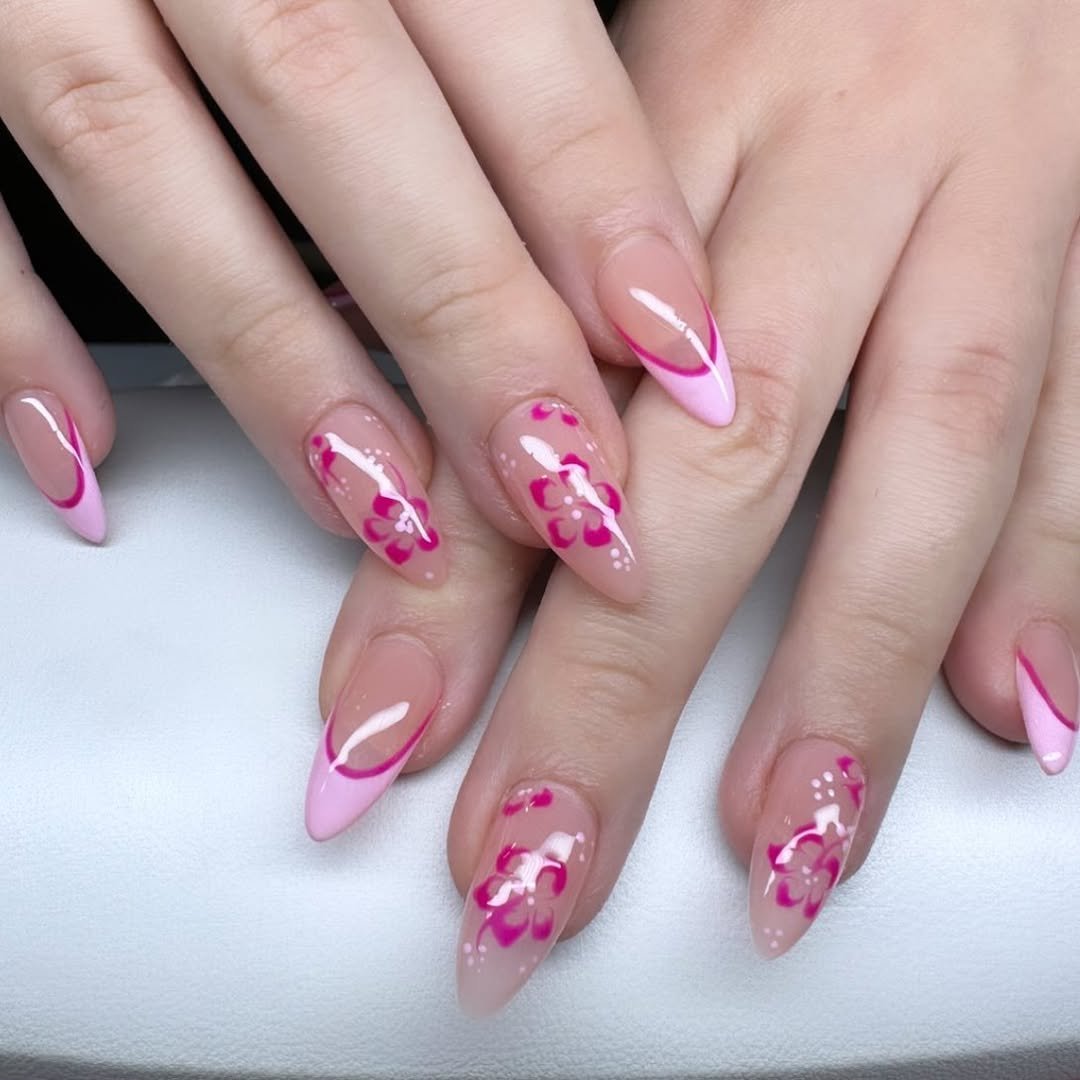 17. Hot Pink Floral Almond