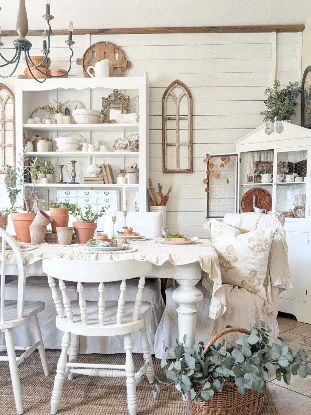 This feels like stepping into a curated shop where every piece has a story. Layers of greenery, ceramics, and woven textures build a scene that’s rich without feeling crowded.