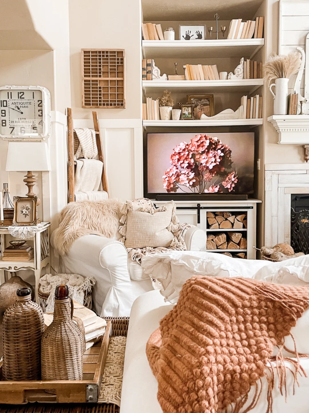 This space wraps around you. Creamy tones, layered textiles, and a hint of blush create a softness that feels almost like a retreat within the home.