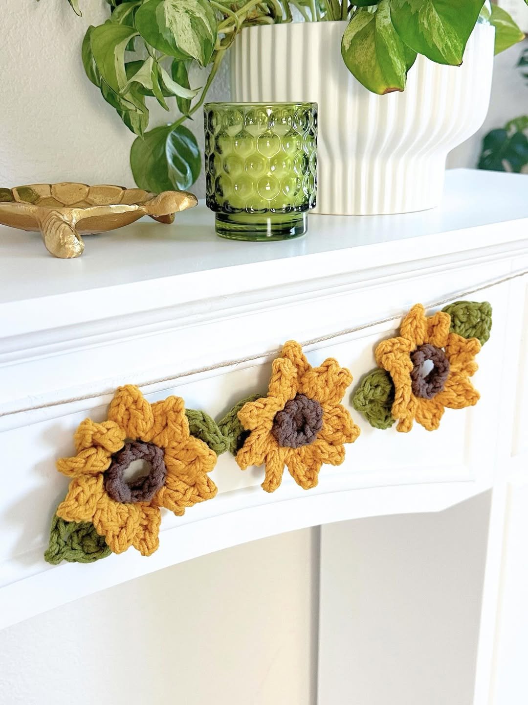 This crocheted sunflower garland brings a touch of charm that feels personal and thoughtful. The texture adds depth, while the golden tones echo that late-summer glow.