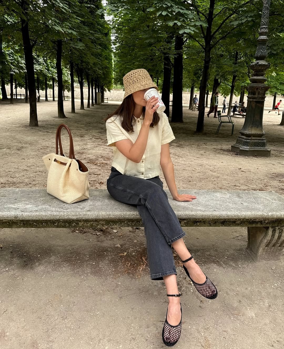 The woven bag and straw hat add texture and personality, turning a simple combo into something memorable. It’s calm, chic, and very wearable.