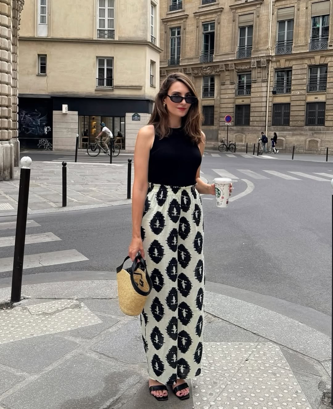 Add sleek sunglasses and a woven bag, and suddenly it’s giving “quick coffee” but make it fashion. It’s simple, sharp, and very effortlessly Parisian.