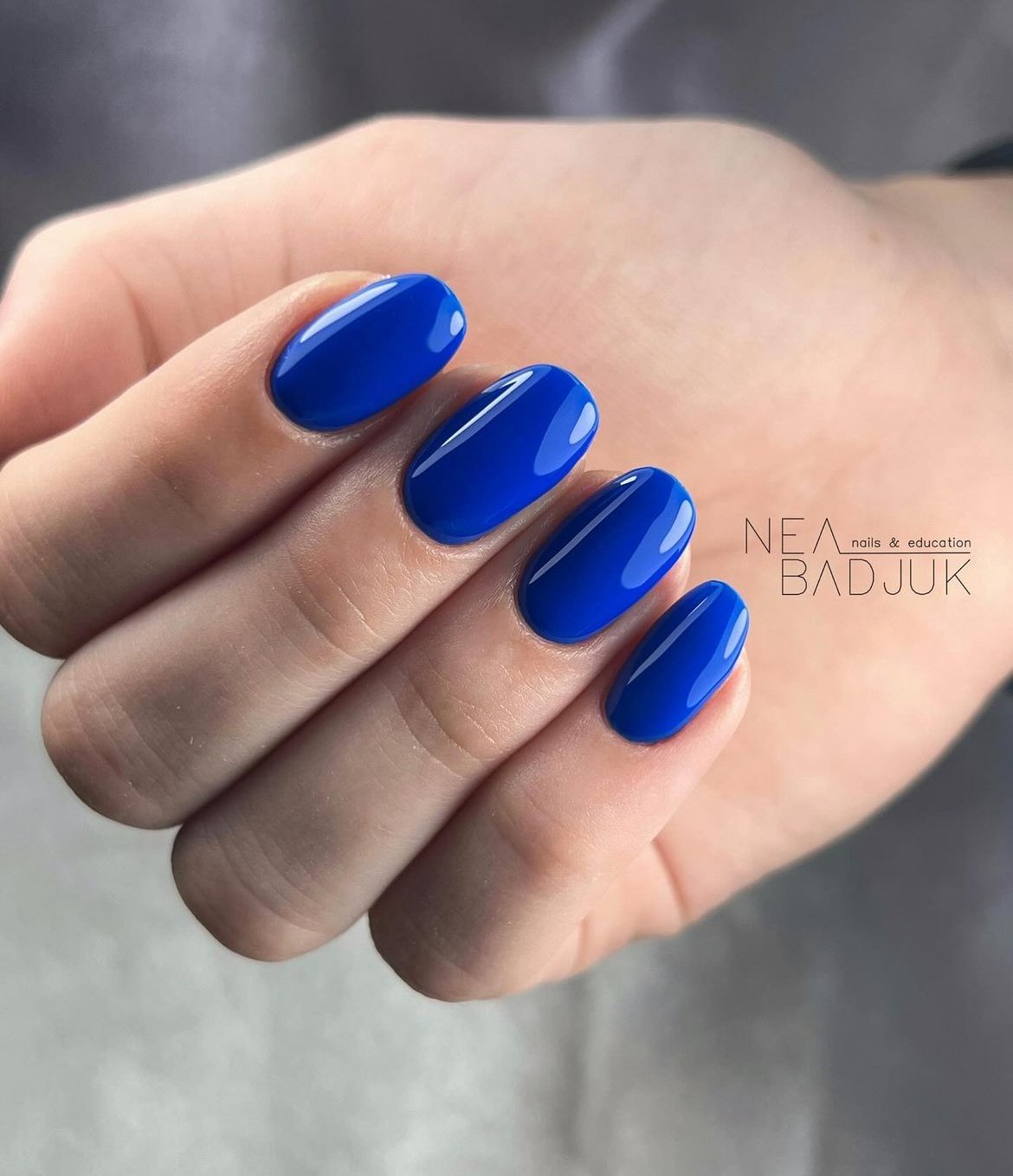 This rich royal blue manicure is bold in the best way. The high-gloss finish gives the color a sleek, almost glass-like shine that makes short round nails look modern and confident.