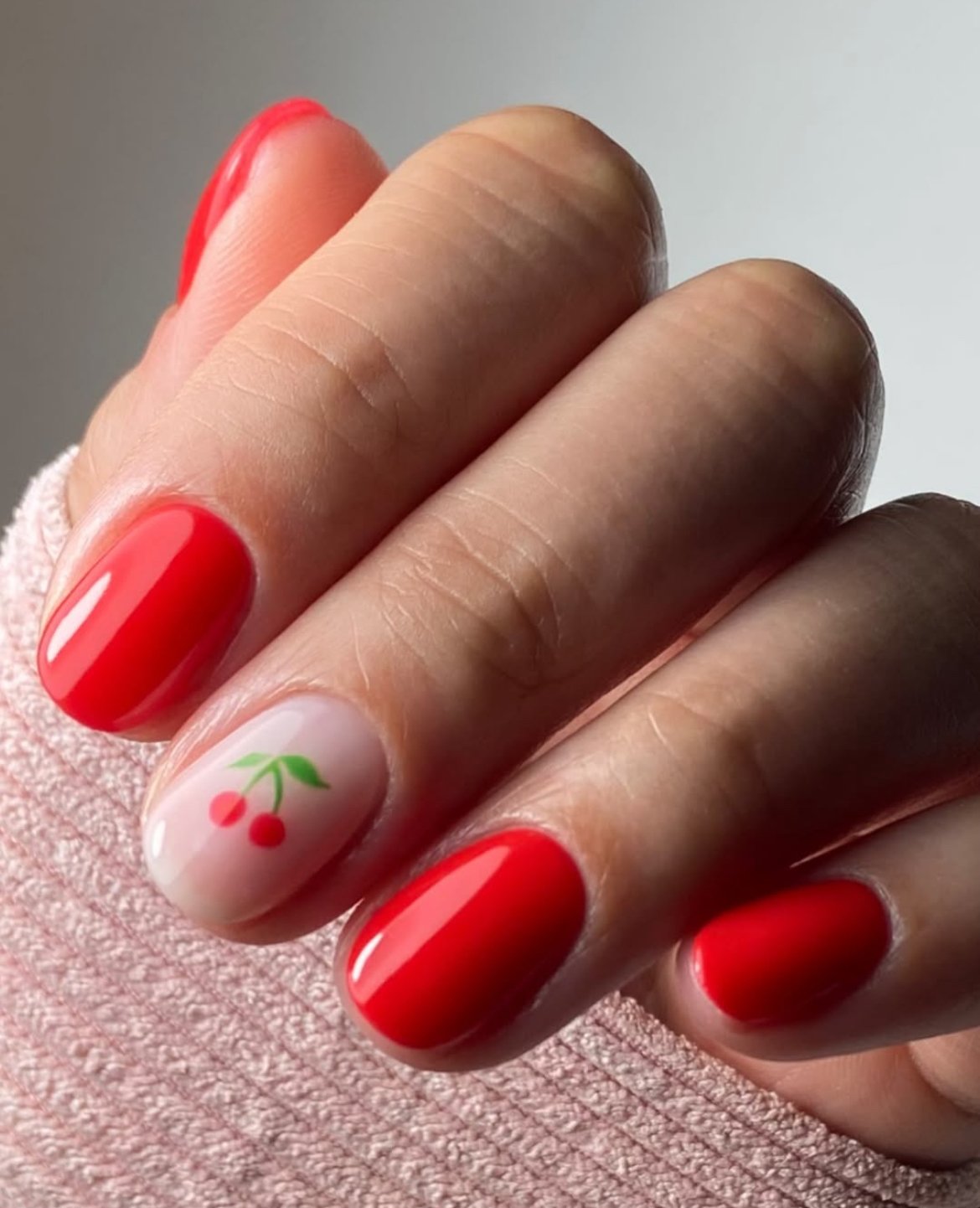 Bold red nails instantly bring that classic summer energy, and the tiny cherry accent nail adds just the right amount of playful charm. The glossy finish makes the red look extra vibrant and juicy.