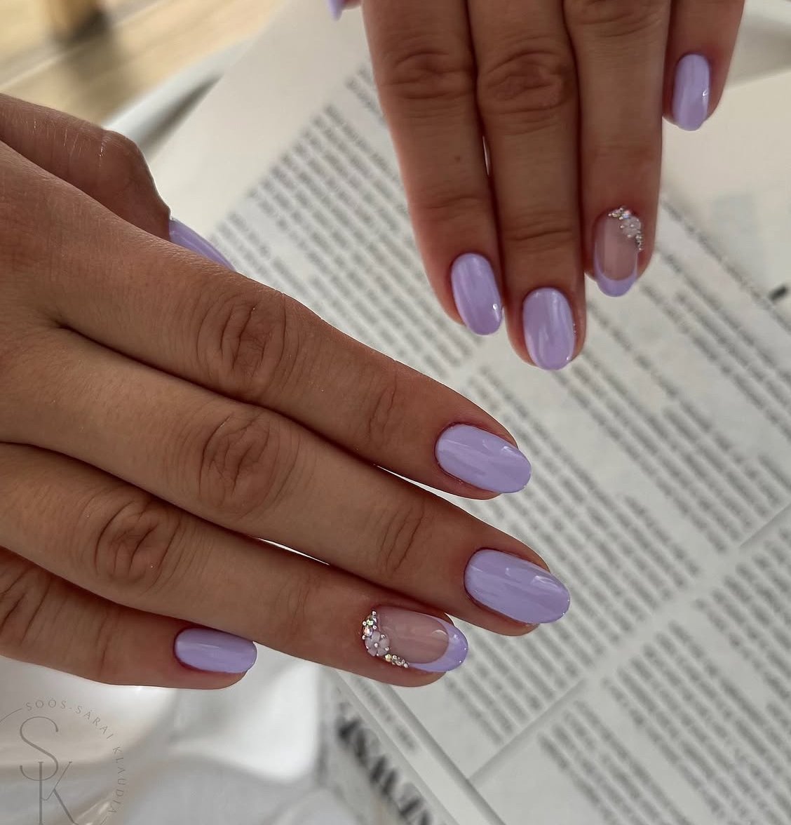 This soft lilac manicure is the definition of understated summer elegance. The short round shape keeps things practical and clean, while the glossy lavender shade adds a calm, dreamy vibe that feels perfect for warm weather. The tiny rhinestone accent on the nude nail gives just the right amount of sparkle without taking away from the simplicity.