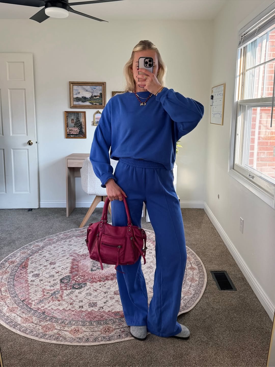 Matching sets always make getting dressed feel effortless. This rich blue sweat set creates a clean, coordinated look that feels put together without trying too hard.