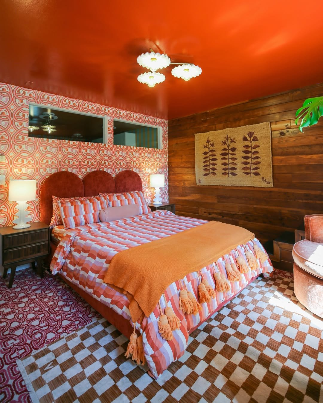 Every detail leans into joy, from the scalloped headboard to the layered textiles. It’s fearless, a little nostalgic, and exactly the kind of bedroom that makes mornings feel brighter.