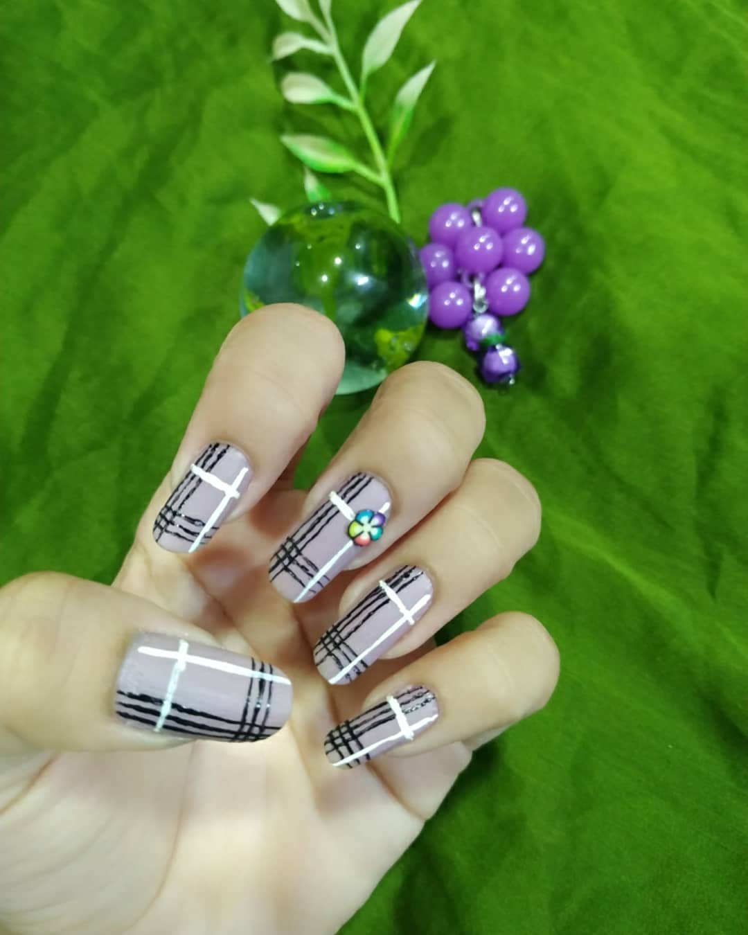 Who says Thanksgiving nails have to stick to warm tones? @nailartdiaries13 breaks the mold with muted purple plaid, sharp black-and-white lines, and the cutest pop—a tiny floral accent. It’s like your chicest fall table runner got a glam makeover.