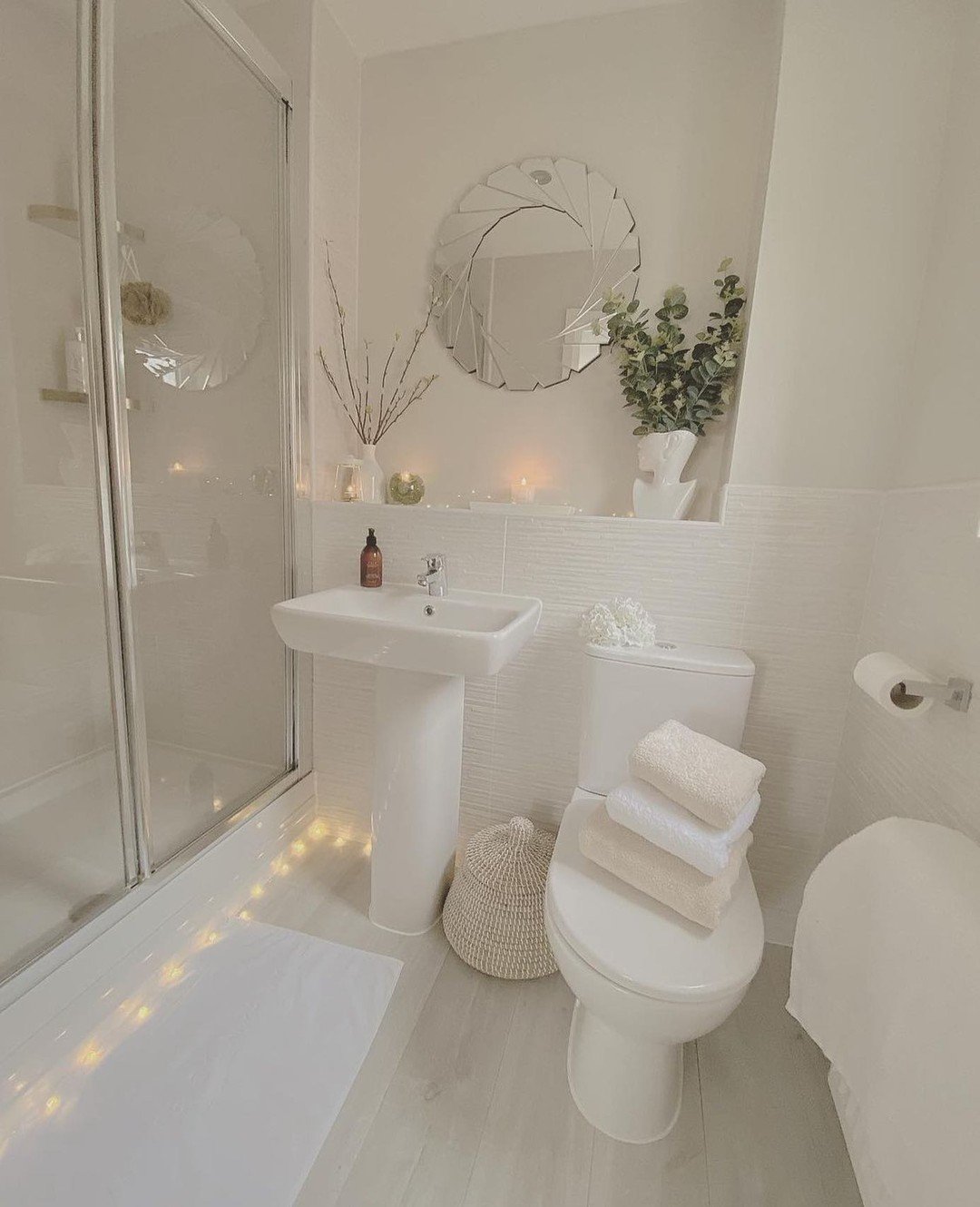 And then you’ve got the styling—plants, soft textures, little decor touches—that make it feel personal. It’s not just a bathroom, it’s a vibe.