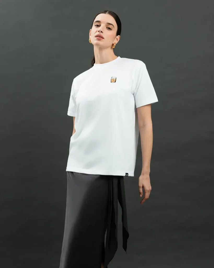 @wear.lmn gives us clean lines and smart contrast in the most minimal-chic way. The crisp white tee is classic, but it’s the sleek, asymmetrical black midi skirt that adds the edge. It’s modest, it’s modern, and it’s totally magnetic.
