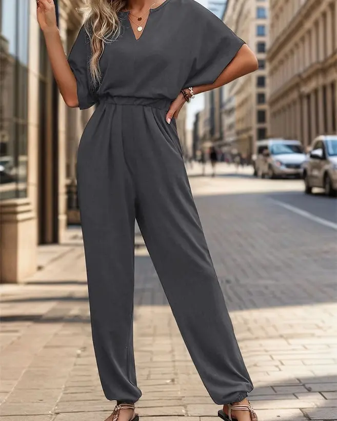@skyandsparrowboutique brings the jumpsuit back in a big way. This charcoal number is the kind of outfit you wear when you want to look put-together with minimal effort. The gathered waist cinches just right, and those flutter sleeves? Soft glam in motion.