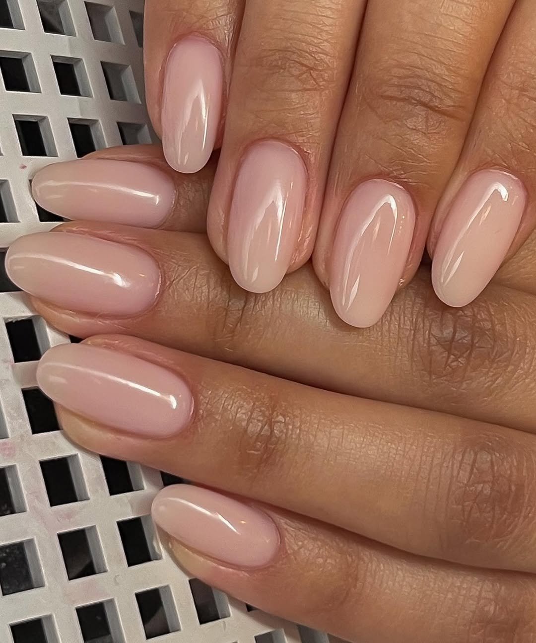 This is quiet luxury in nail form. A smooth, glossy taupe on short almond nails—no art, no glitter, no drama. Just pure polish perfection.