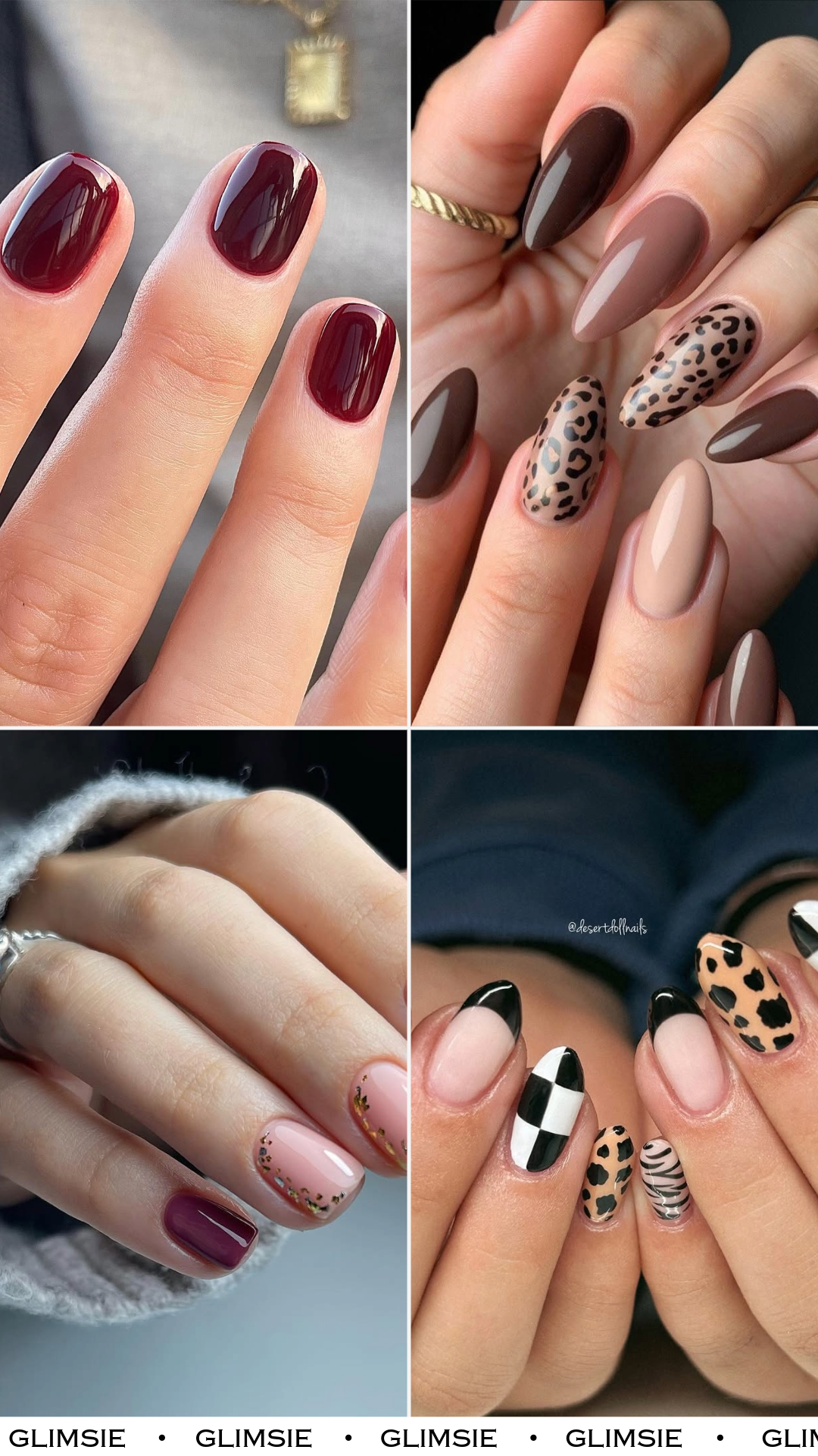 This set is basically autumn’s neutral wardrobe on your hands. Warm chocolate browns, creamy taupes, and that bold leopard accent nail? It’s cozy with a little wild side.