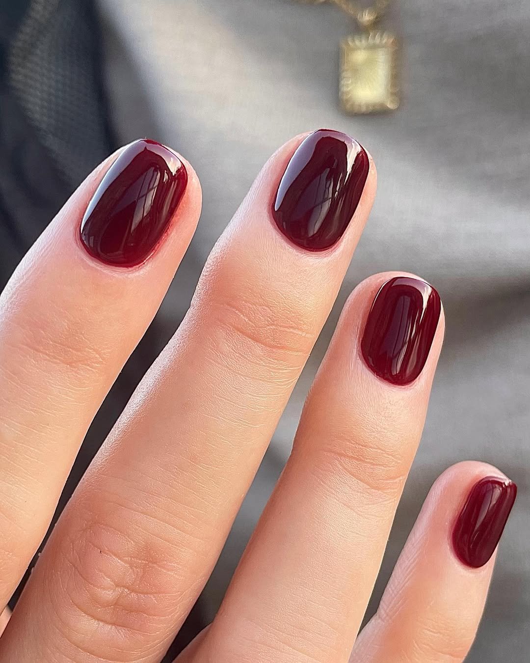 This deep wine shade is fall in its purest form. Short, softly rounded nails drenched in a glossy bordeaux? It’s rich, it’s classic, and it never tries too hard. The shine alone makes it feel luxe—like a glass of red in manicure form.