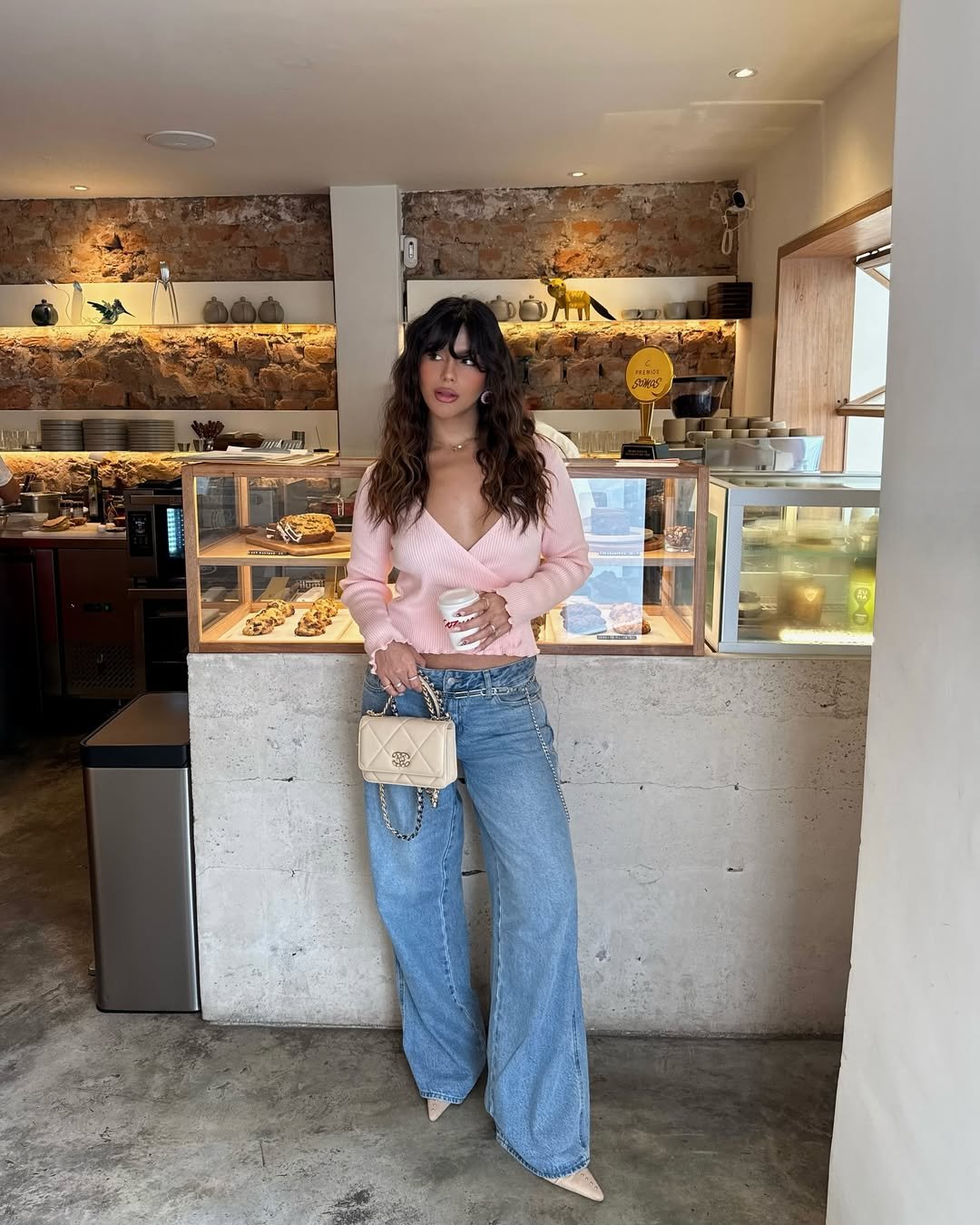 This fit screams “I didn’t try” while clearly trying just enough. The cropped top + oversized denim combo hits that sweet spot between effortless and intentional.