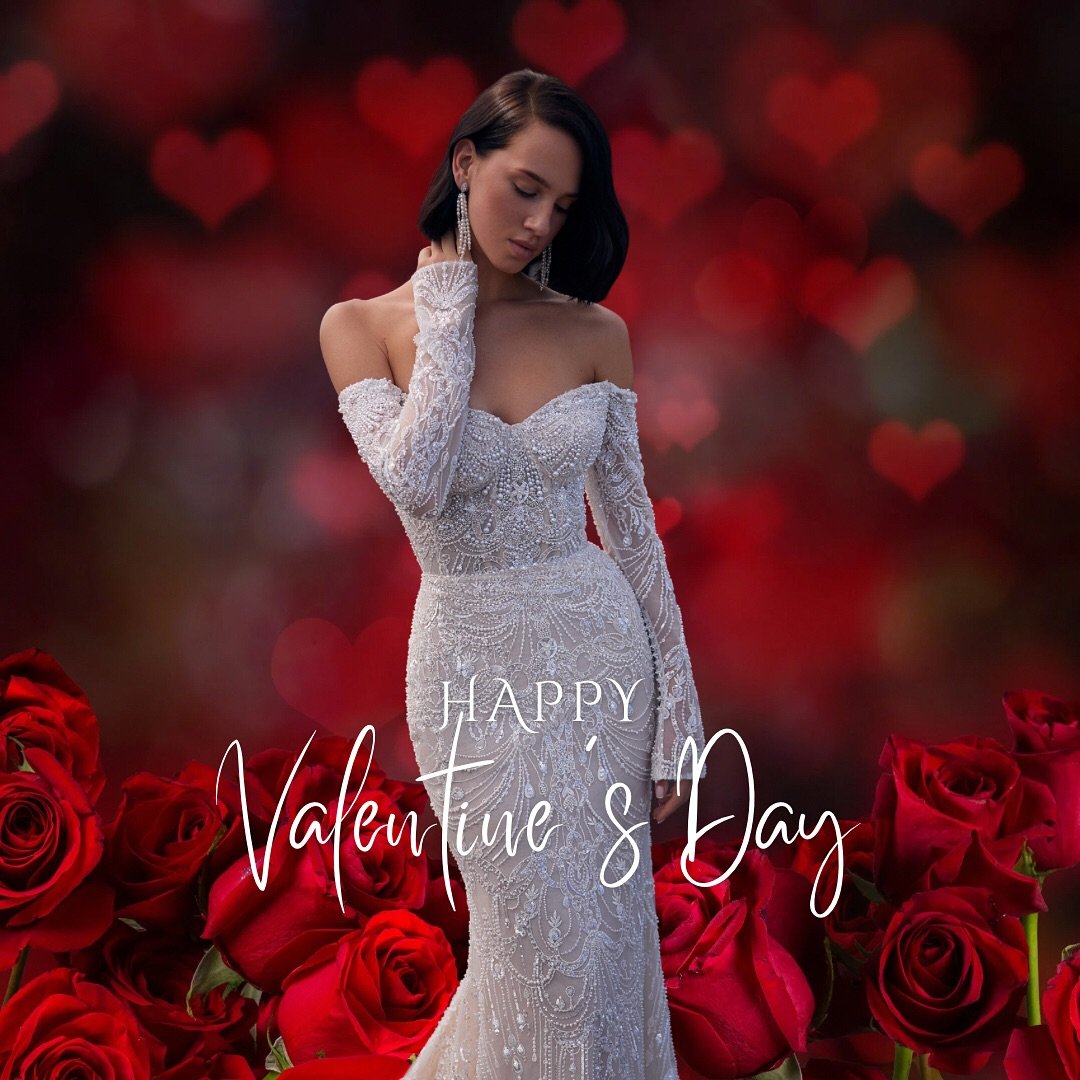 This white, off-the-shoulder gown feels like a love letter in dress form — intricate beading, soft draping, and a silhouette that glows against a dreamy red-rose backdrop. It’s bridal-romantic but still perfectly suited for a dramatic Valentine’s photoshoot or a formal event.