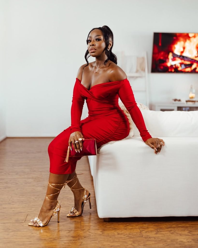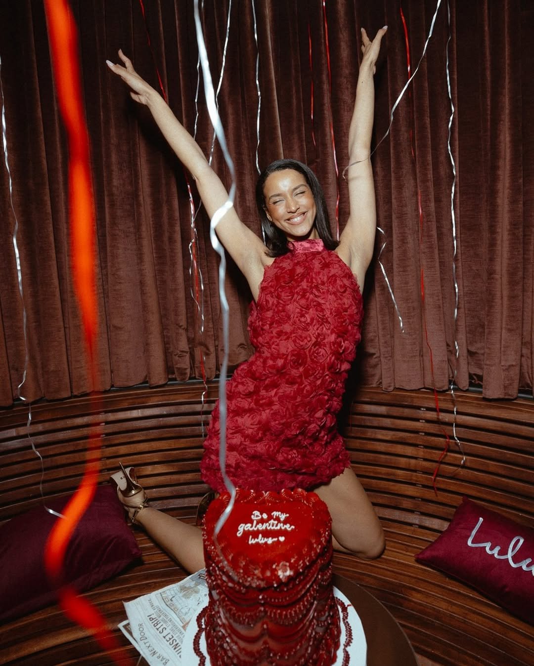There’s something joyful about this dress. The rich red texture adds depth and movement, making it feel playful yet polished. It’s bold, celebratory, and undeniably Valentine-coded.