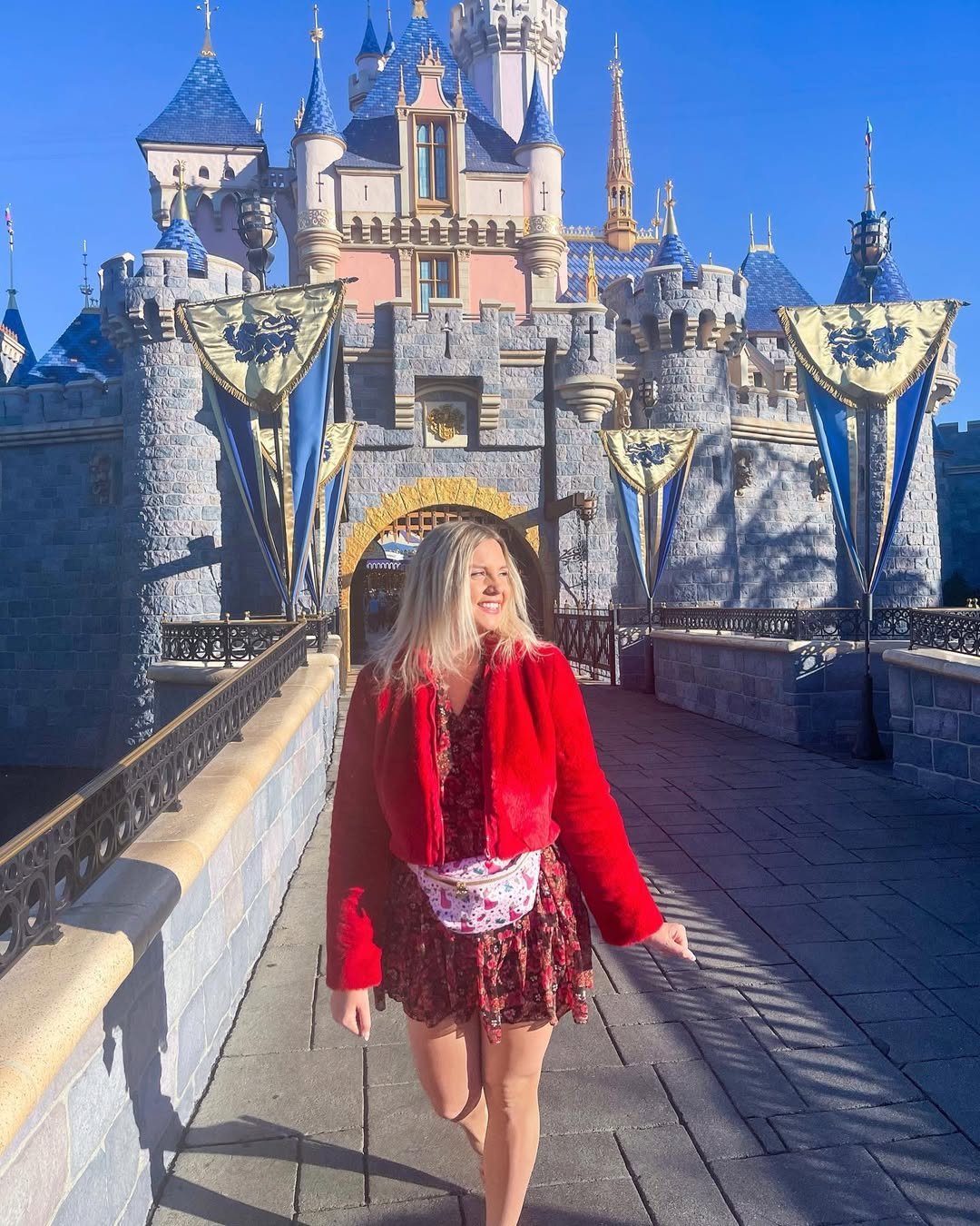 This look feels like Valentine’s Day through a fairytale lens. The red jacket paired with a playful dress brings warmth, movement, and a little magic to the moment.