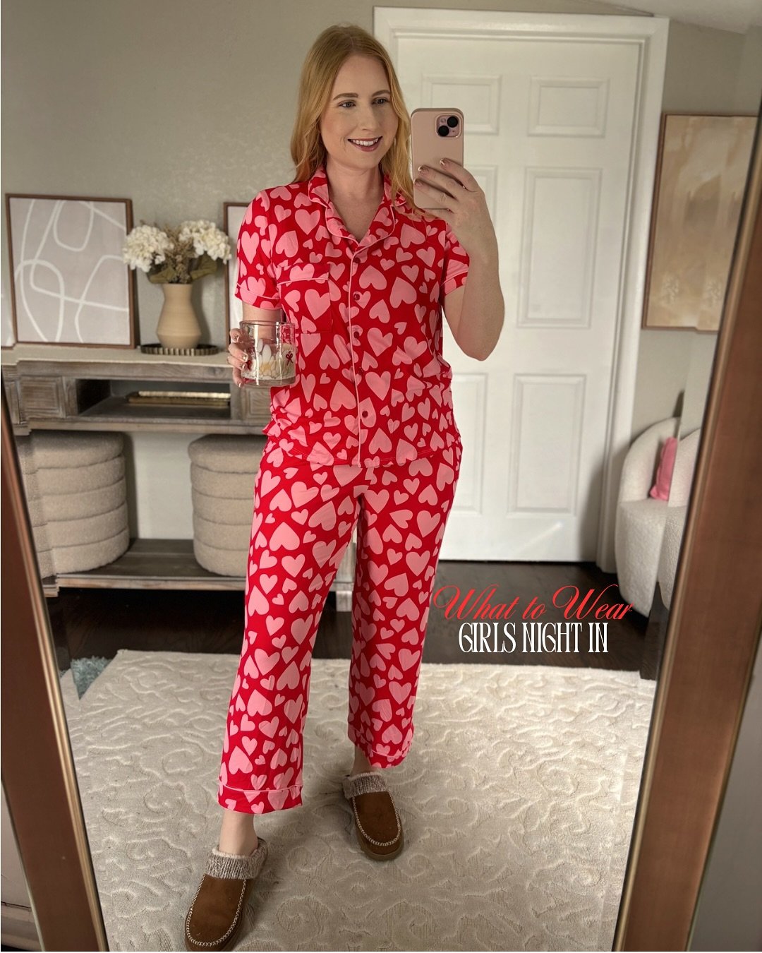 It’s ideal for a girls’ night in or a solo Valentine with snacks and a movie. Comfortable, cheerful, and unapologetically festive.
