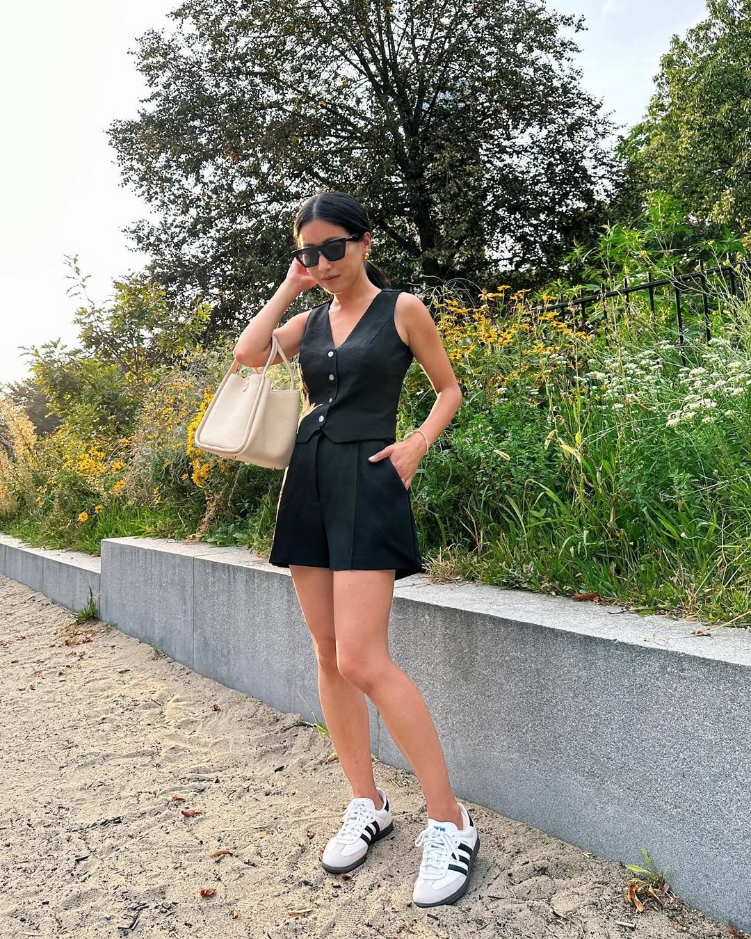 What really sells it is the balance. The vest keeps it polished, the sneakers keep it real. It’s proof that you don’t need heels (or effort) to look put together.