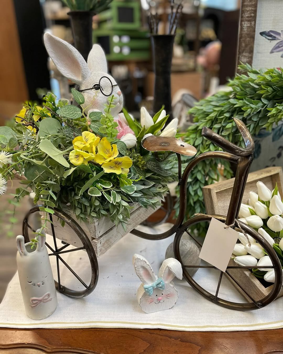 This tiny bicycle steals the show in the sweetest way. Filled with greenery and soft yellow blooms, it brings a playful touch that feels straight out of a spring afternoon.