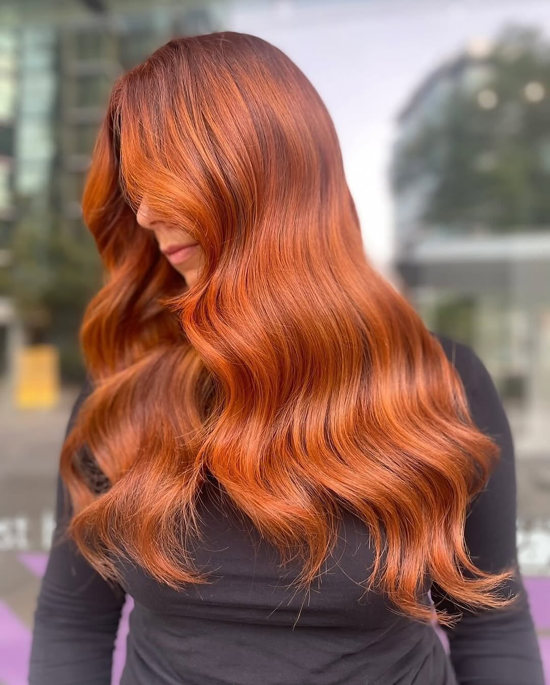 This shade is straight-up molten copper perfection. It’s bold without being loud, rich without going flat, and those soft waves really let the warmth move and shine from every angle. It feels confident, polished, and very “main character walking into golden hour.”
