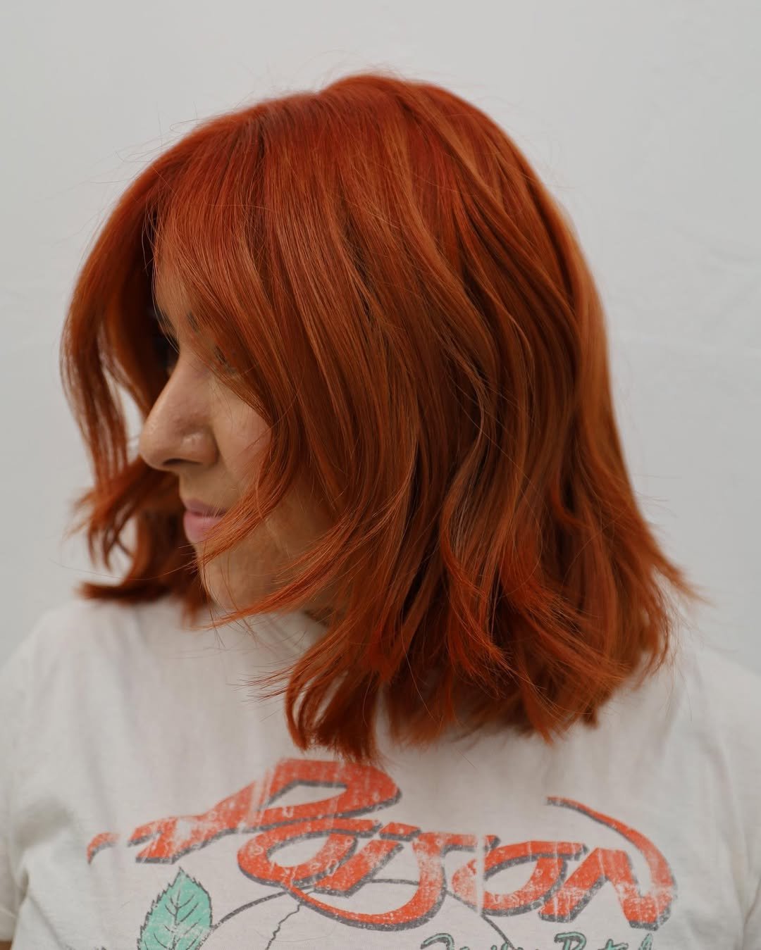 Bright, warm, and full of personality—this ginger-red shade is pure energy. The softness of the cut keeps it approachable, while the color brings all the fun.