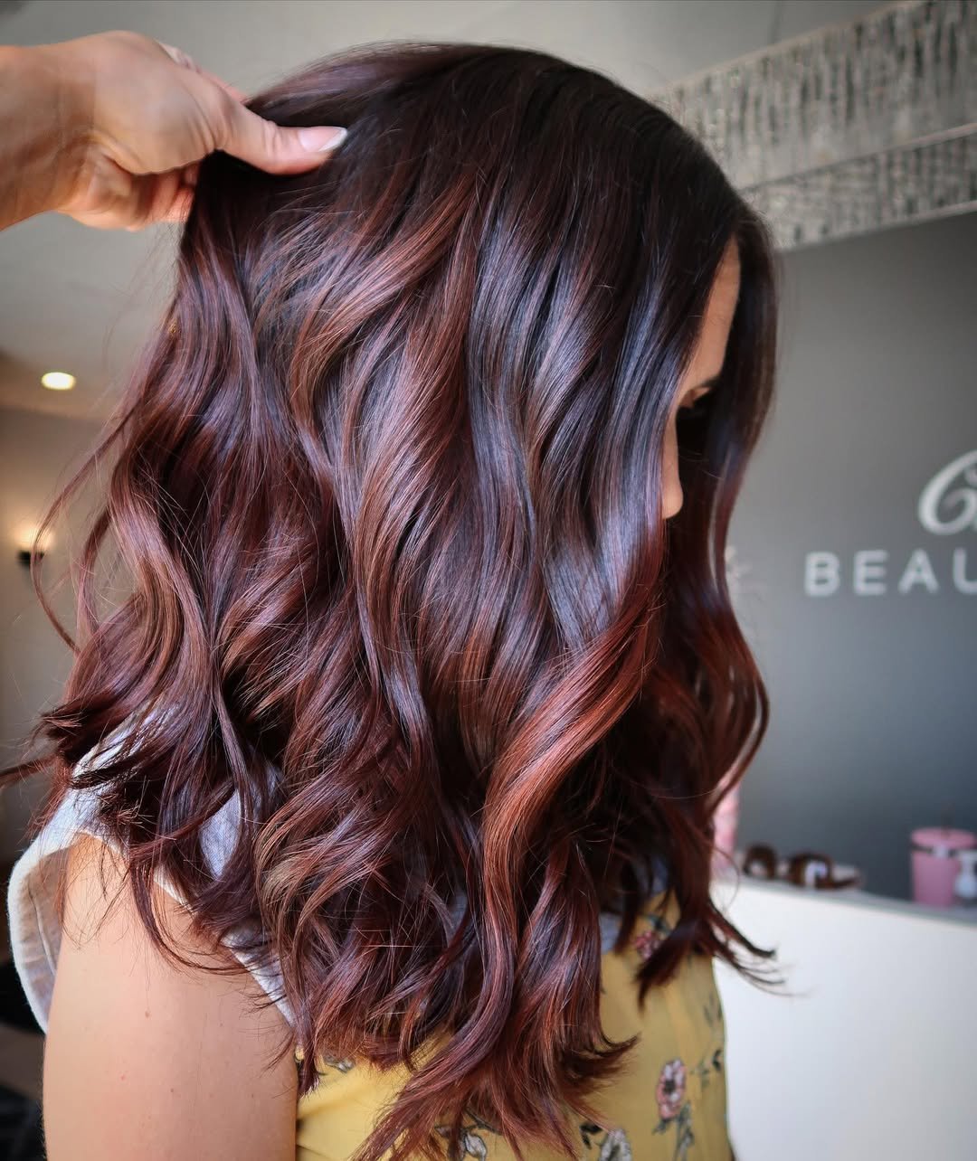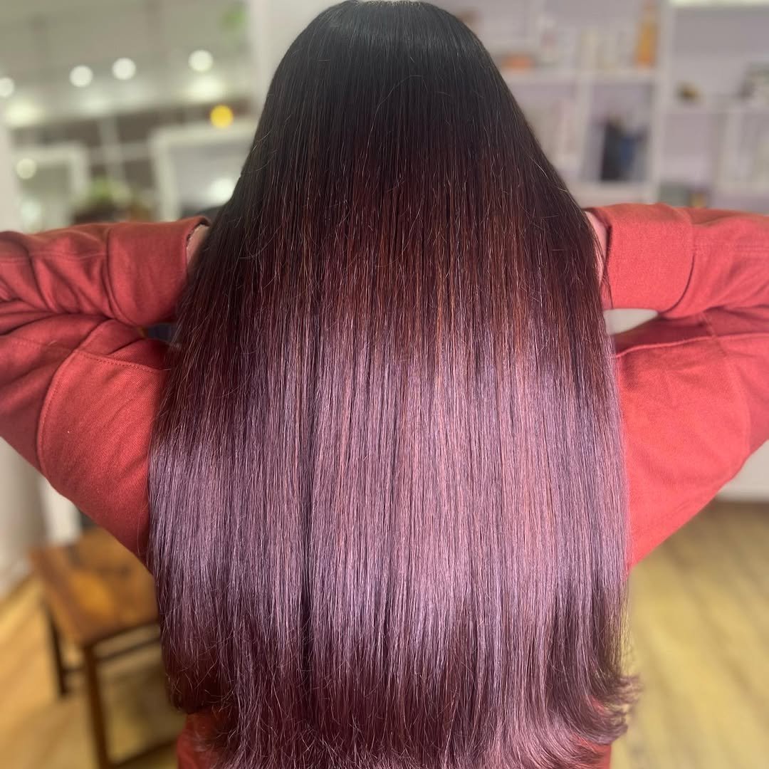 This shade sits right between red and brunette, and that’s what makes it so addictive. Warm wine tones peek through with every wave, catching light in the most subtle, elegant way.