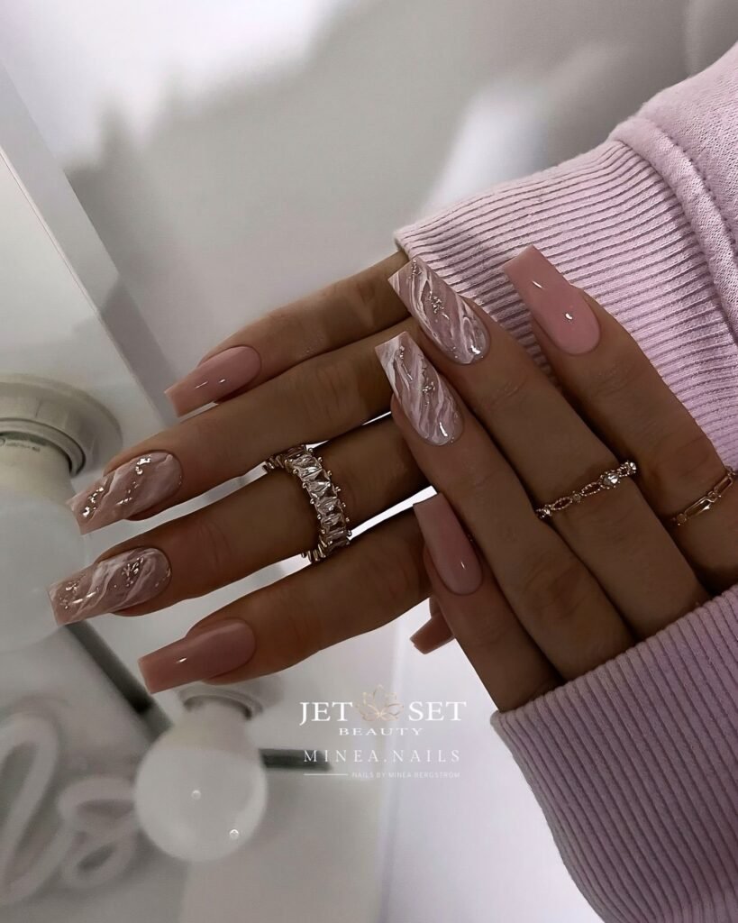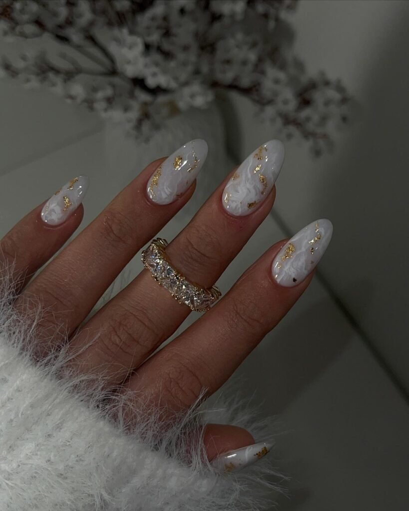 White marble with touches of gold foil? That’s bridal luxury in nail form. These nails look like they were crafted from tiny pieces of polished stone—rich, dramatic, but still refined.