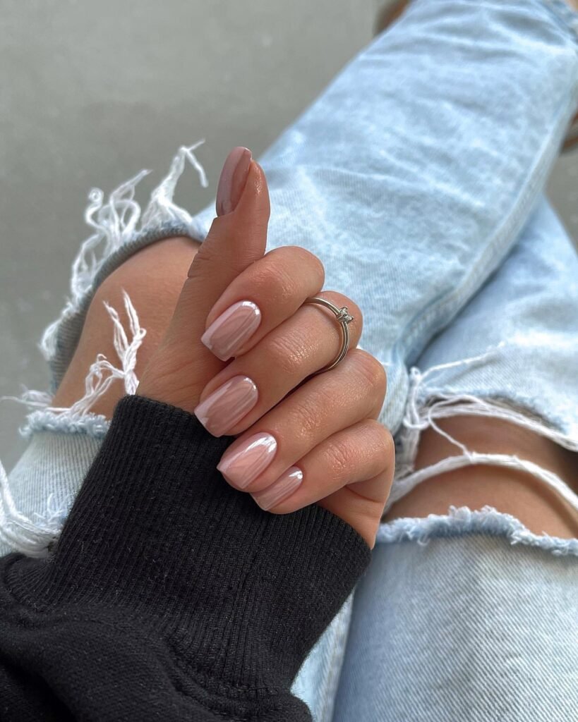 These nails have that “wedding morning glow” with a soft creamy pink that complements every skin tone. It’s subtle, airy, and super wearable—ideal for brides who prefer clean beauty aesthetics.